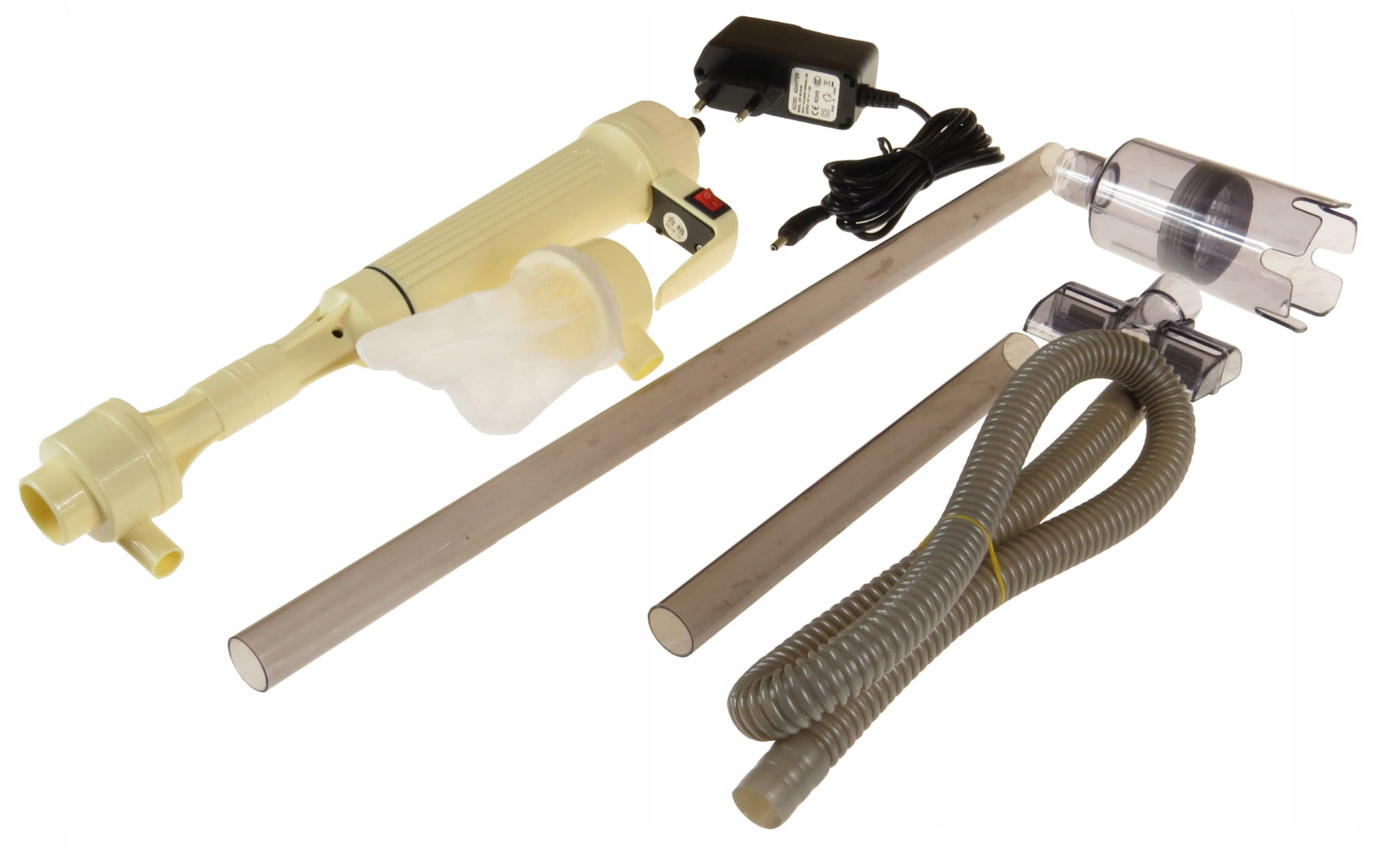 desmant, аквариумный пылесос с источником питания. батареи. питается с помощью источника питания (добавлено в набор) , или две батареи R14 1,5V (не входит в комплект) . Кабель: 170см Два сочетания всасывания: для очистки аккериев и других безрезультатно. Благодаря этому устройству чистка аквариума больше не будет грустной необходимостью. Единственное, что нам нужно сделать, это поместить осознание в наш аквариум, а затем нажмите кнопку сверху. После этой процедуры наша гравюра, как пылесос, начинает сосать грязь с дна резервуара, оставляя ее в корзине и «плюнуть» чистую воду в наш аквариум. Или после установки дренажной трубки мы избавимся от воды из резервуара, что ускорит «изменение».