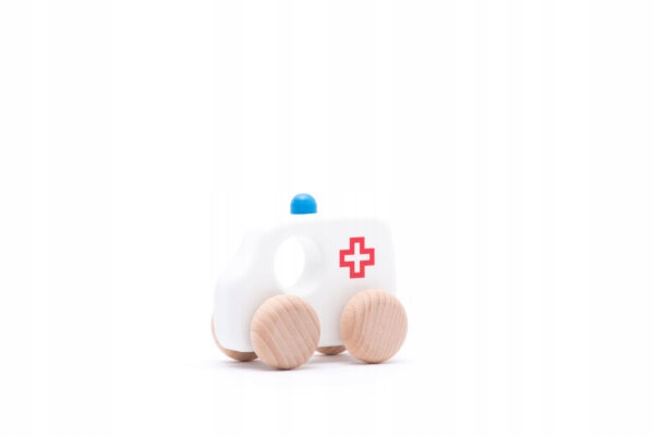 Машина скорой помощи — простая деревянная игрушка, которая доставляет много радости в повседневной игре.