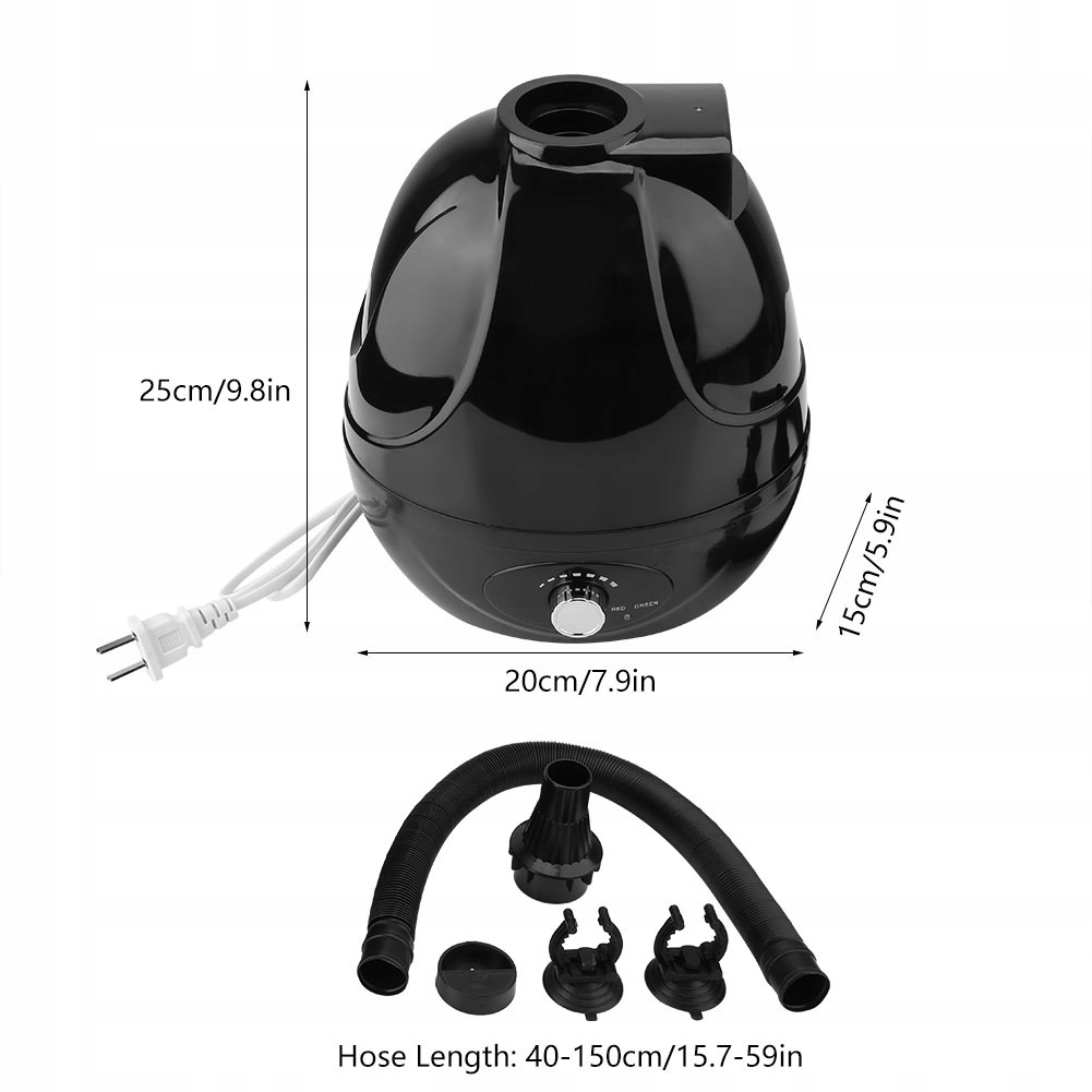 1. Бак большой емкости вмещает до 2,2 литра воды. 2. В комплект входит гибкий шланг длиной 40-150 см, длину можно регулировать по мере необходимости. 3. Защита от сухого хода, автоматически отключает устройство, когда в резервуаре нет воды, безопасно в использовании. 4. Конструкция поворотного переключателя позволяет регулировать количество тумана по желанию. 5. Простота установки, поставляется с полным набором аксессуаров.