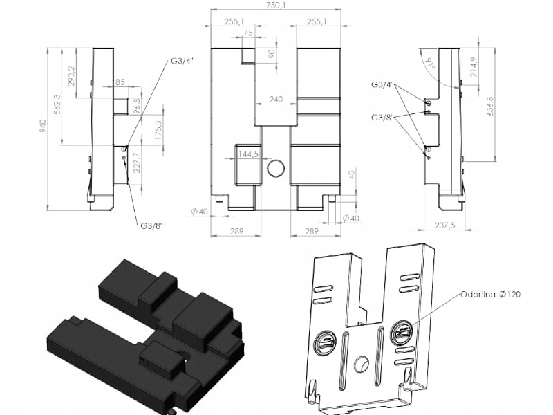 - Сервисное отверстие: 128,75 мм,