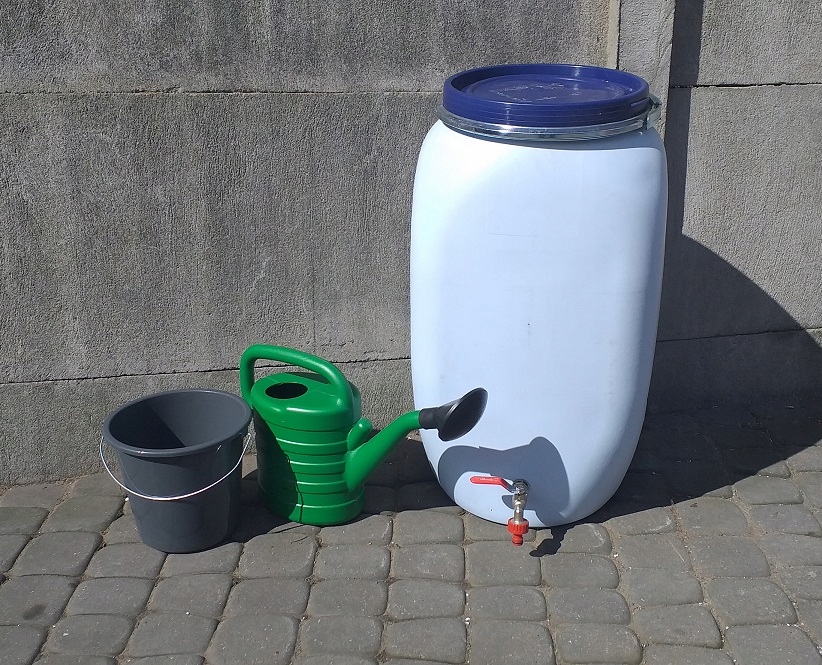 Практическая и очень прочная пластиковая бочка емкостью 70 л, идеально подходящая для сбора дождевой воды.