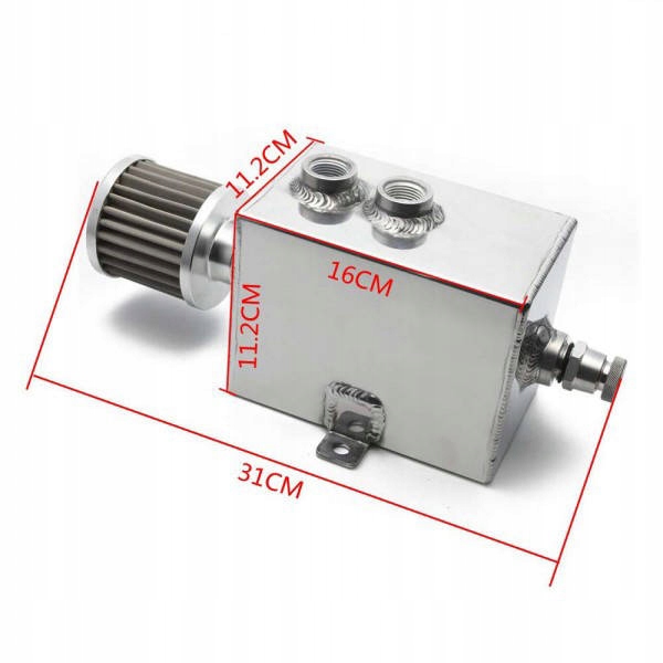 Универсальный алюминиевый бак для пневмоторакса двигателя. Предназначен для конденсации паров масла и предотвращения попадания масла во впускную систему, что защищает двигатель и повышает его производительность. Сварка TIG обеспечивает максимально возможное качество изделия. Сапун из нержавеющей стали с уплотнительным кольцом для предотвращения ослабления из-за вибрации. Сетка вентиляционного фильтра изготовлена из нержавеющей стали, подлежит очистке и многоразовому использованию. Сливной клапан большого объема для быстрого опорожнения.