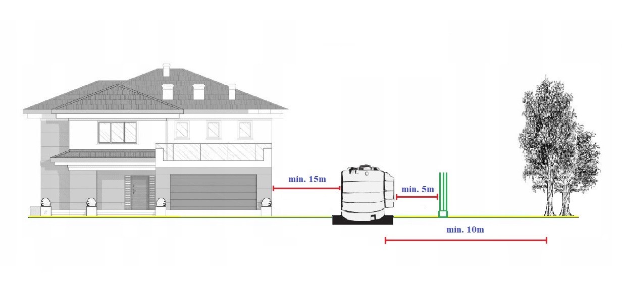- Соблюдайте расстояние не менее 10 м от леса, держаться на расстоянии не менее 5 м от других построек и границ участка, дорог, водозаборов.