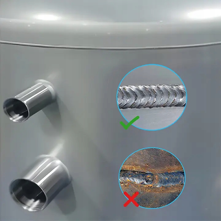 Баки изготовлены из нержавеющей стали высочайшего качества и дополнительно подвергнуты процессу пассивации, что делает резервуар полностью устойчивым к коррозии. Пассивация создает на поверхности нержавеющей стали защитный слой оксидов, который защищает металл от внешних факторов, приводящих к коррозии. Кроме того, этот процесс удаляет поверхностные загрязнения, такие как железо и другие металлические загрязнения, обеспечивая высочайший уровень гигиены.