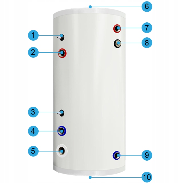 Это универсальное решение также используется в тех случаях, когда мы хотим избежать затопления всей системы центрального отопления, например, с помощью раствора гликоля. Все, что вам нужно сделать, это создать отдельный контур через змеевик, который эффективно передает тепло на центральное отопление. Более того, благодаря большому количеству соединений бак можно использовать и в качестве гидромуфты, позволяя соединить несколько источников тепла в одну систему.
