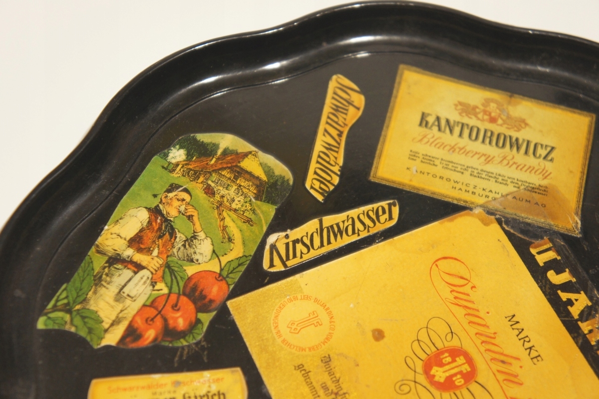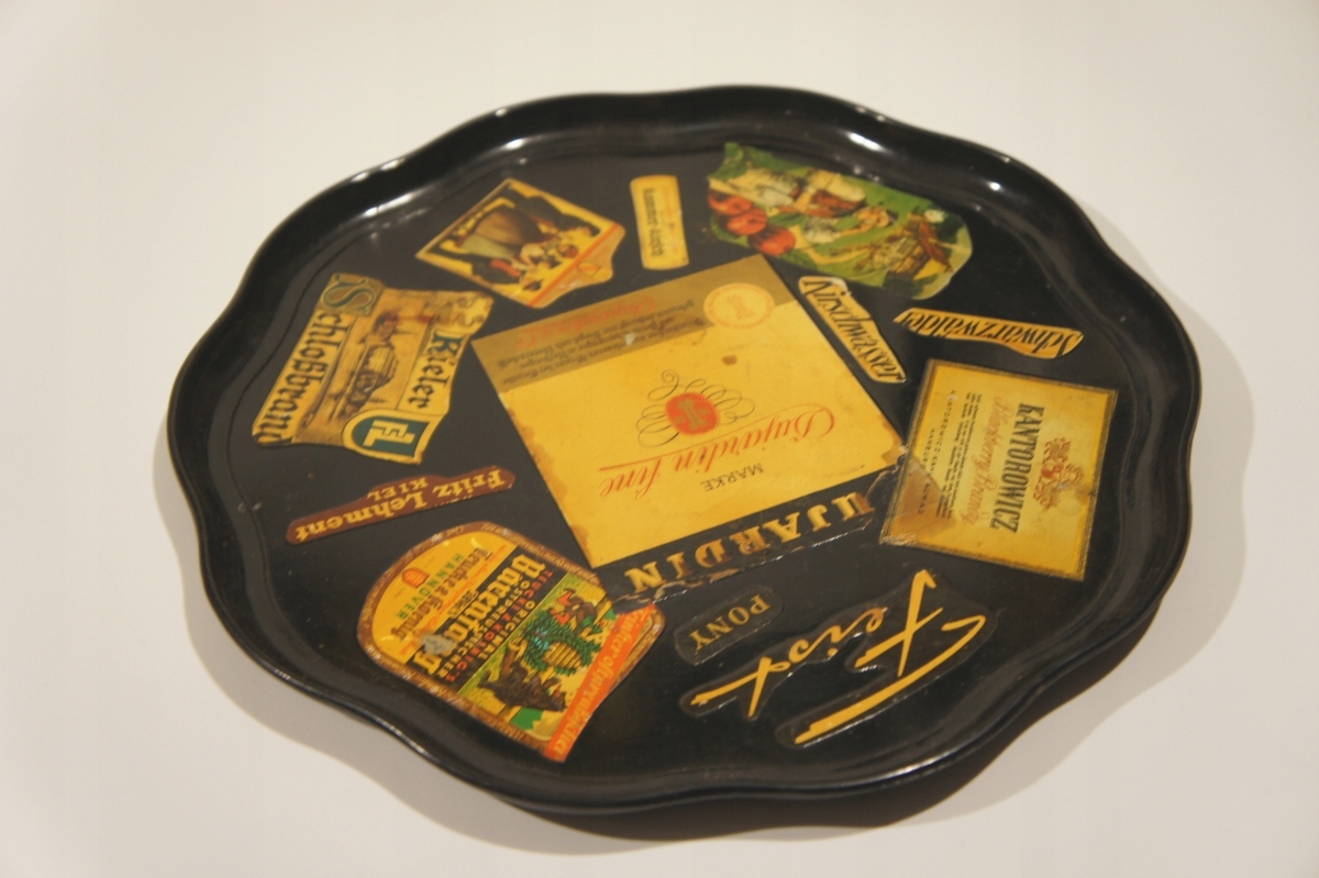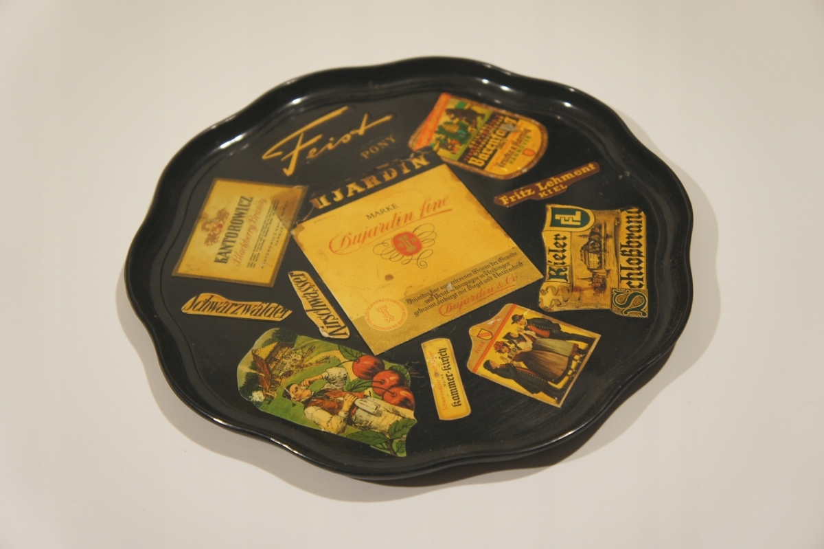 БАКЕЛИТОВЫЙ ПОДНОС ЧЕРНЫЙ БАКЕЛИТ PRL с ЭТИКЕТКАМИ KANTOROWICZ KAISER
