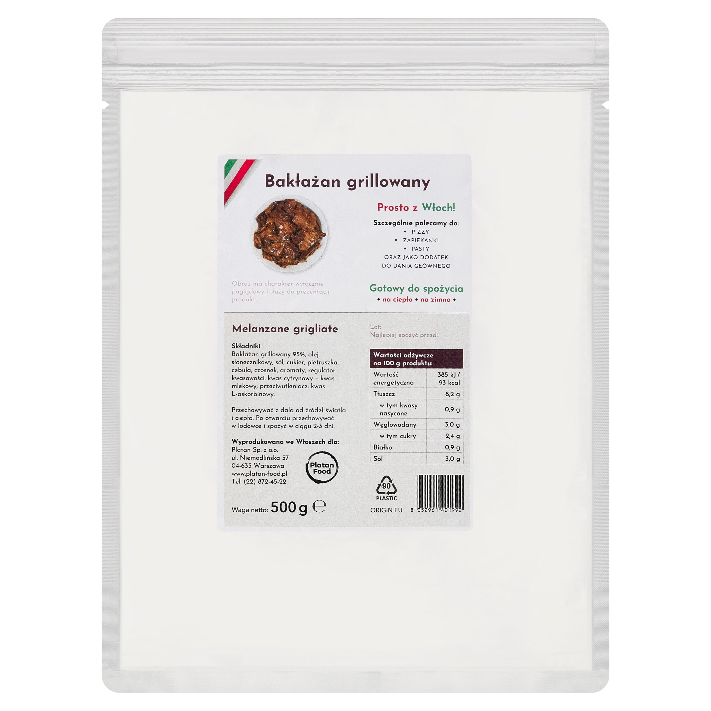 Баклажаны на гриле – уникальный продукт прямиком из Италии, отличающийся интенсивным вкусом, нежной структурой и ароматом средиземноморской кухни. Готовый к употреблению ингредиент с универсальным применением, приготовленный из баклажанов высочайшего качества и приправленный ароматным чесноком и зеленью. Благодаря процессу приготовления на гриле он приобретает легкий дымный привкус, что придает блюдам глубину. Продукт не требует дальнейшей термической обработки – идеален как для горячего, так и для холодного использования. Практичная упаковка весом 500 грамм облегчает дозирование на профессиональной кухне. Идеально подходит для гастрономии, кейтеринговых компаний и заводов по производству готовых блюд. Это быстрый способ обогатить ваше меню настоящими итальянскими нотками, при этом вам не придется готовить овощи на гриле самостоятельно.