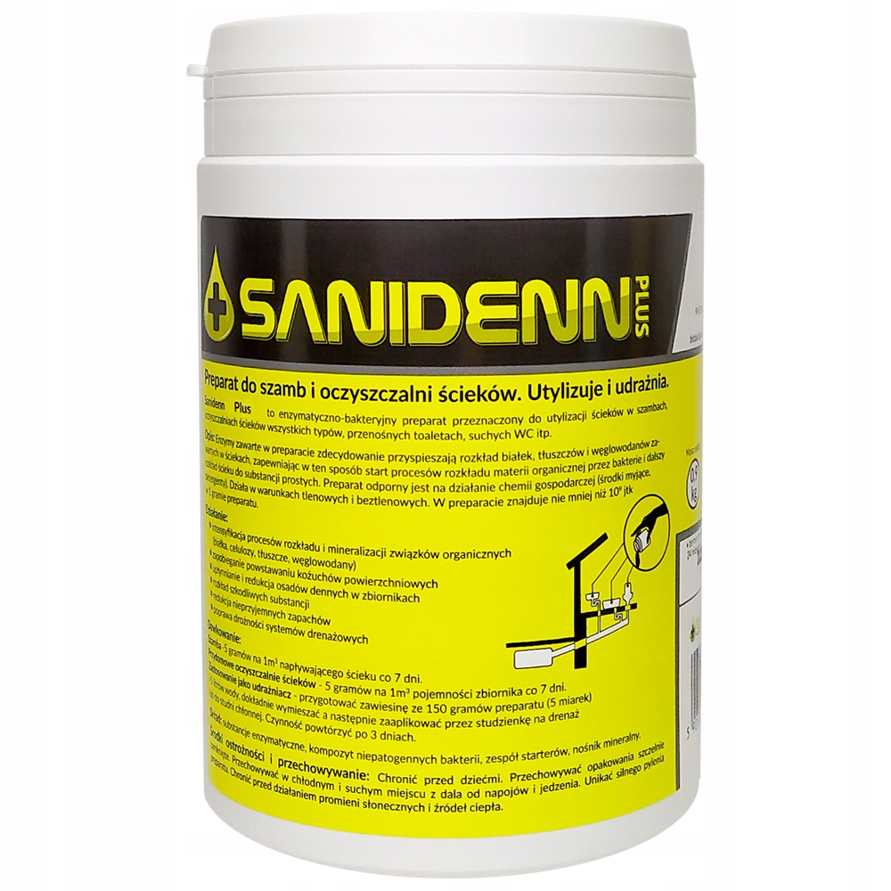 Саниденн Плюс – ферментно-бактериальный препарат, предназначенный для отвода сточных вод в септики, очистные сооружения всех типов, переносные туалеты, сухие туалеты и т.п.