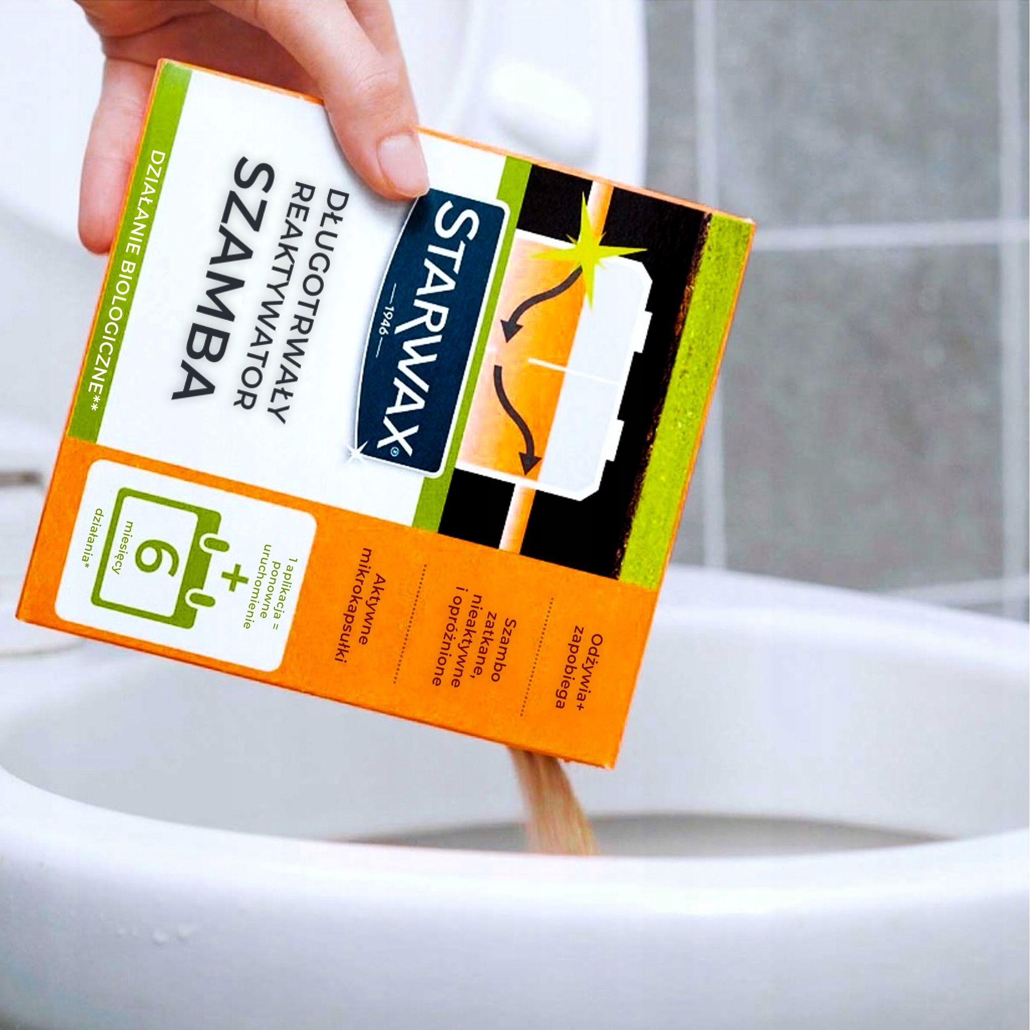 ✅ Простота в использовании — просто вылейте содержимое в унитаз, спустите воду и всё!