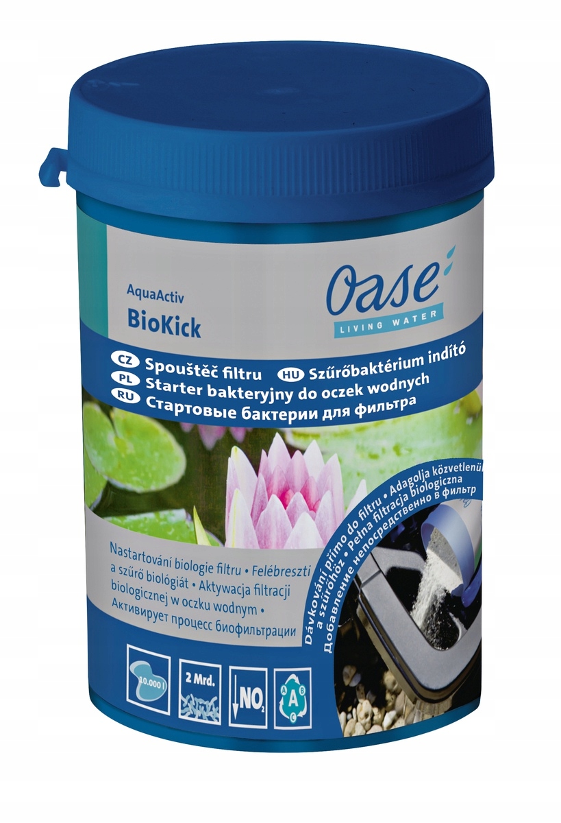Высококонцентрированные стартовые бактерии Oase AquaActive BioKick активируют биологию садового пруда при первом запуске фильтра или весной. Более 10 миллионов активных микроорганизмов ускоряют заселение губок вашего фильтра ценными бактериями. С этим стартером ваш фильтр для садового пруда достигнет полной эффективности в течение нескольких недель.
