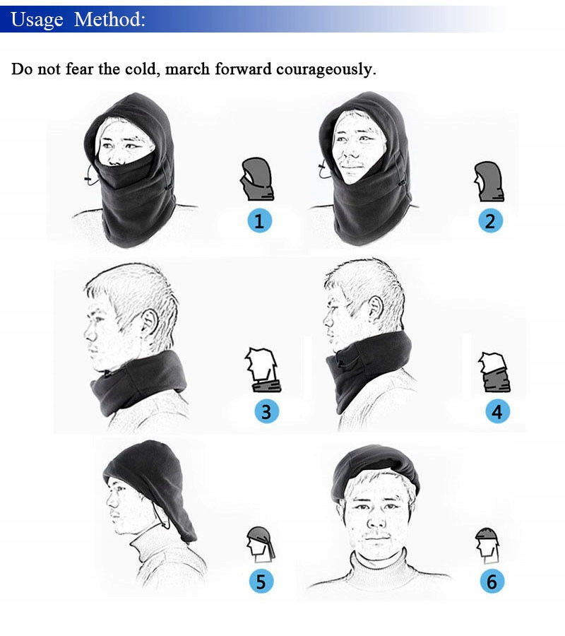 Флисовая балаклава 5 в 1 универсального размера, регулируемая специальными манжетами, предназначена для женщин и мужчин. Отличное решение для лыжников, сноубордов, горных экспедиций и для повседневного использования зимой. Он хорошо работает как отдельный головной убор или под шлемом. Также пригодится мотоциклистам в осенне-зимний сезон. Защищает от холода, ветра и осадков. Он не издает неприятного запаха и материал «дышащий».