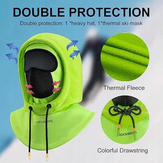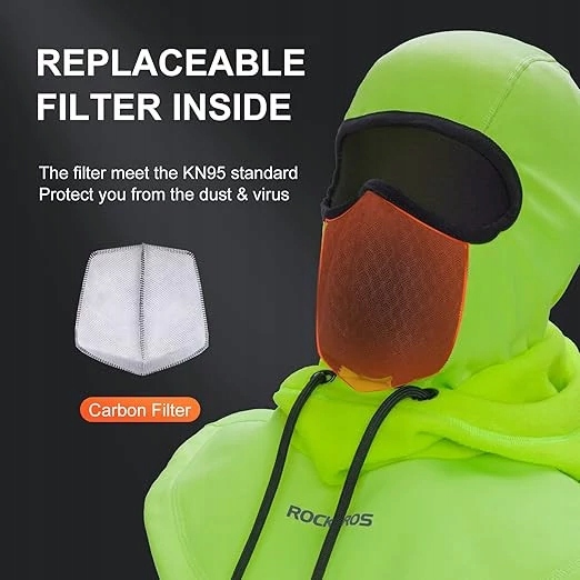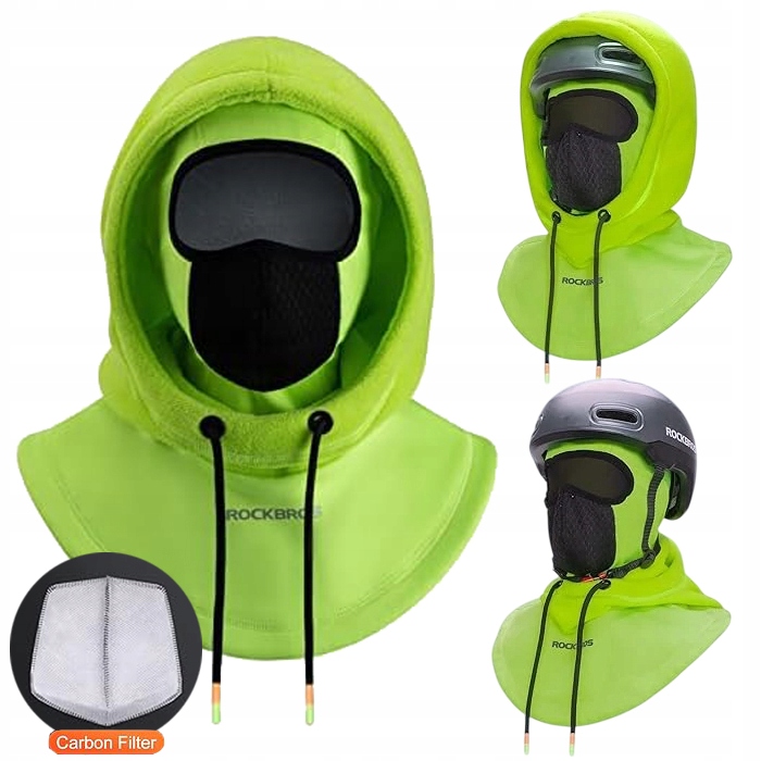 БАЛАКЛАВА С КАПЮШОНОМ + ФИЛЬТР ДЛЯ ЛЫЖНОГО ШЛЕМА ROCKBROS, ЗЕЛЕНЫЙ