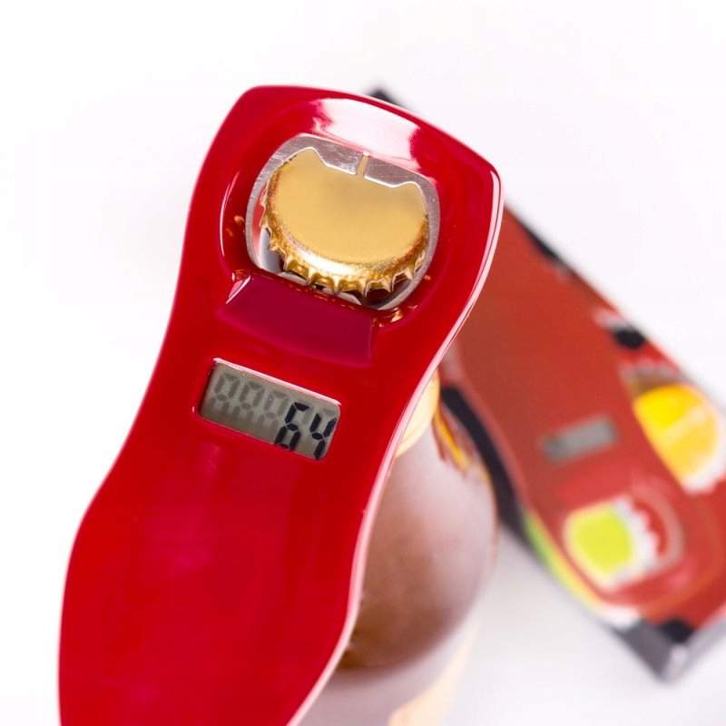 имеет встроенный счетчик бутылки. Он говорит, открывая пиво. Пользователь может записать 10 секунд любого звука. Оригинальный способ заставить кого -то пожелать. Возможность повторной записи и удаления. Он имеет трехдигитный дисплей. Сброс счетчика с защитой от случайного удаления. Размеры: 15 см (высота), 5 см (длина), 1 см (ширина). Предупреждения: Батарея