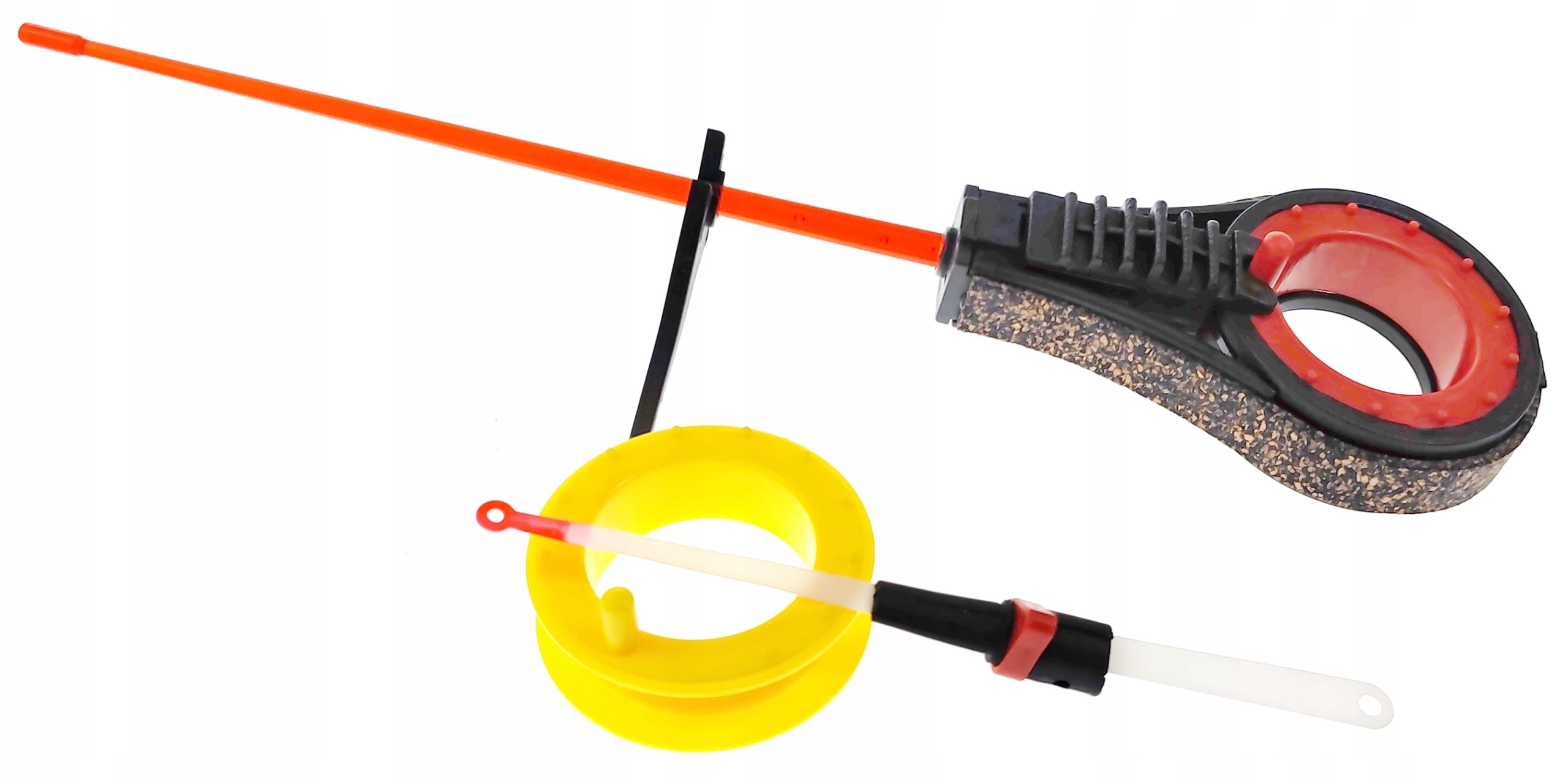 В комплект входит запасная шпуля, кивок и мини-подставка.