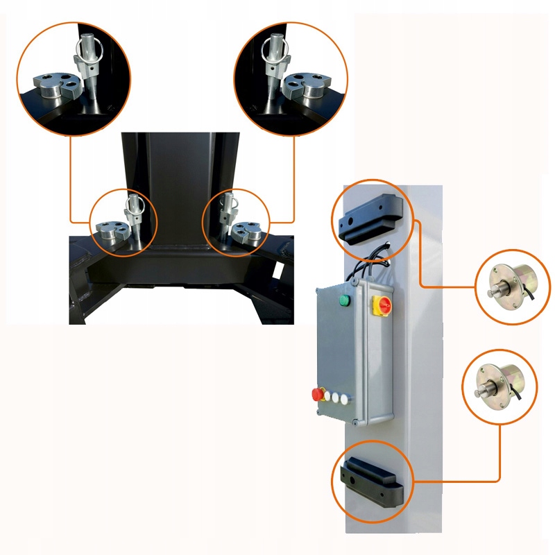 Замки рычагов — это предохранительные механизмы, которые предотвращают самопроизвольное движение рычагов при подъеме автомобиля. Замки работают полностью автоматически, блокируются при подъеме автомобиля и автоматически разблокируются после полного опускания автомобиля.