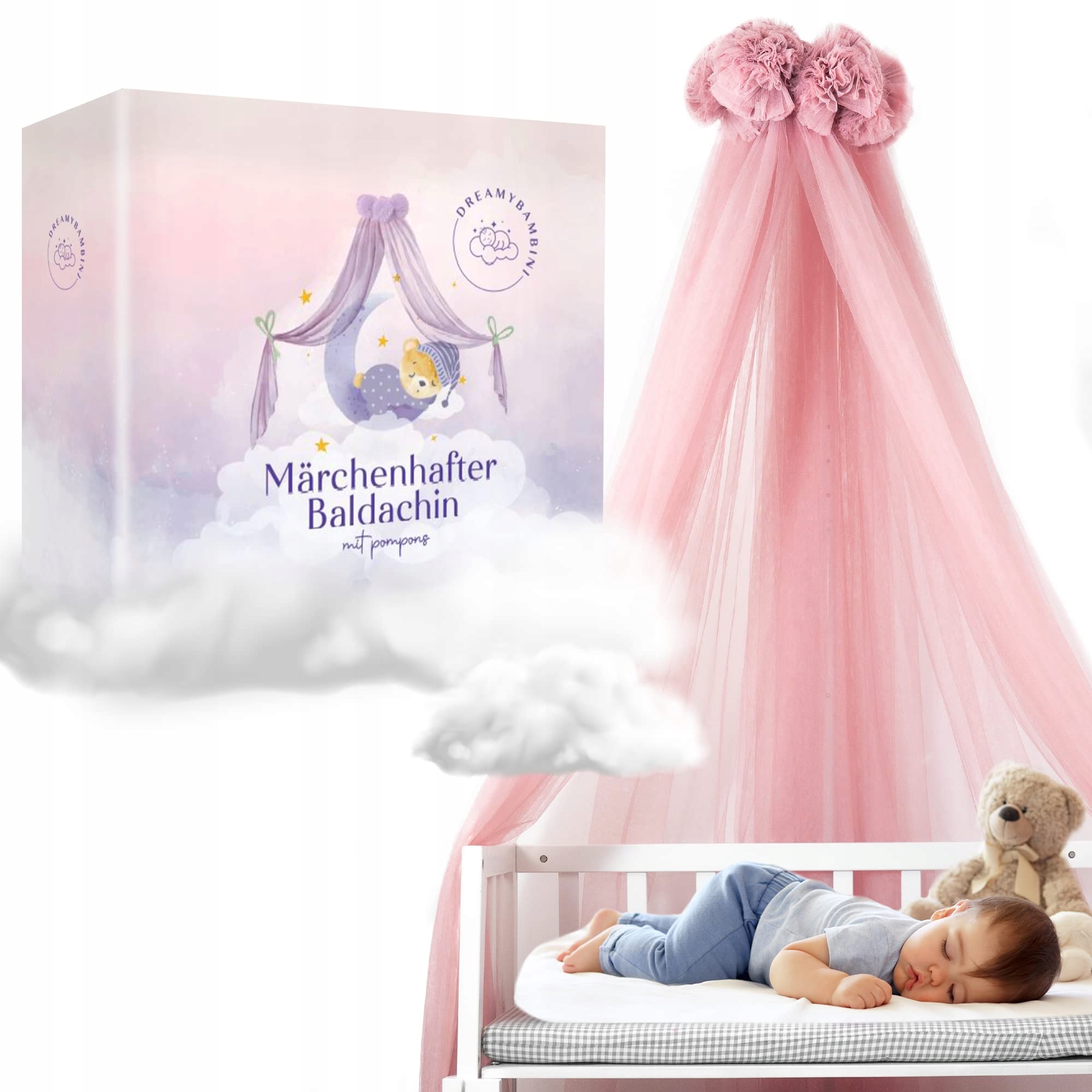 ОЧЕНЬ ПРЕМИУМ ДЛЯ ДЕТЕЙ И МЛАДЕНЦЕВ: Эксклюзивный балдахин старого розового цвета изготовлен из высококачественной дышащей шестиугольной сетки 50D, которая обеспечивает приятную циркуляцию воздуха в комнате. Помпоны, прикрепленные к балдахину детской кровати, привлекают внимание и придают спальне домашнюю, современную атмосферу.
