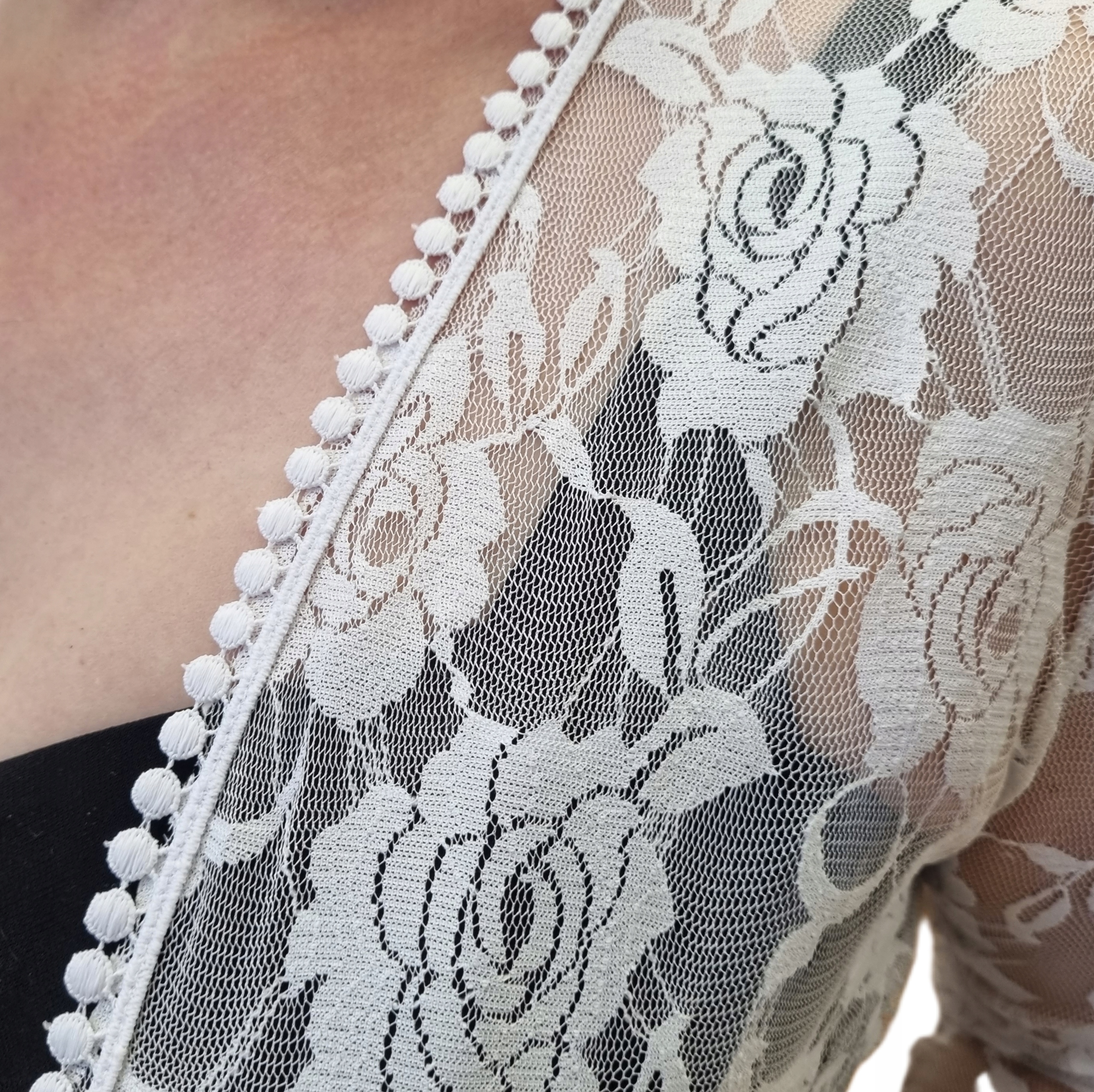 Приглашаю Вас приобрести болеро с длинными рукавами из красивого эластичного кружева с розочками.