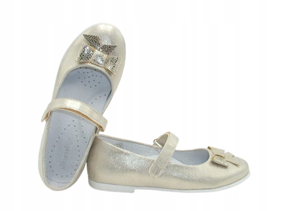 Представляем изящные золотистые балетки для девочек с эффектным бантом спереди. Идеально подходит для различных торжеств. Фасон подходит к любому стилю. Внутренняя часть обуви полностью выполнена из натуральной кожи, которая впитывает влагу и неприятные запахи. Стелька кожаная, профилированная, мягкая. При разработке моделей мы ориентируемся, прежде всего, на комфорт и удобство, а также на оздоравливающее воздействие на детские ножки. Жесткая пятка обеспечивает правильное положение стопы.