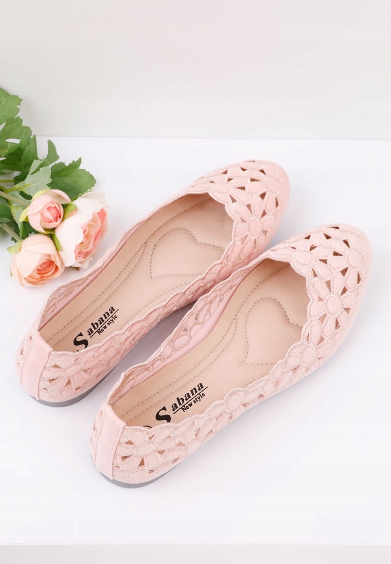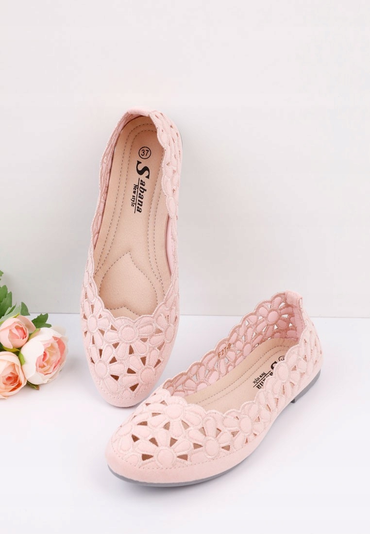 РОЗОВЫЕ ЖЕНСКИЕ БАЛЕТКИ, АЖУРНЫЕ ТУФЛИ НА ПЛОСКОЙ ПЛОСКОСТИ, ТУФЛИ ИЗ ЭКО КОЖИ