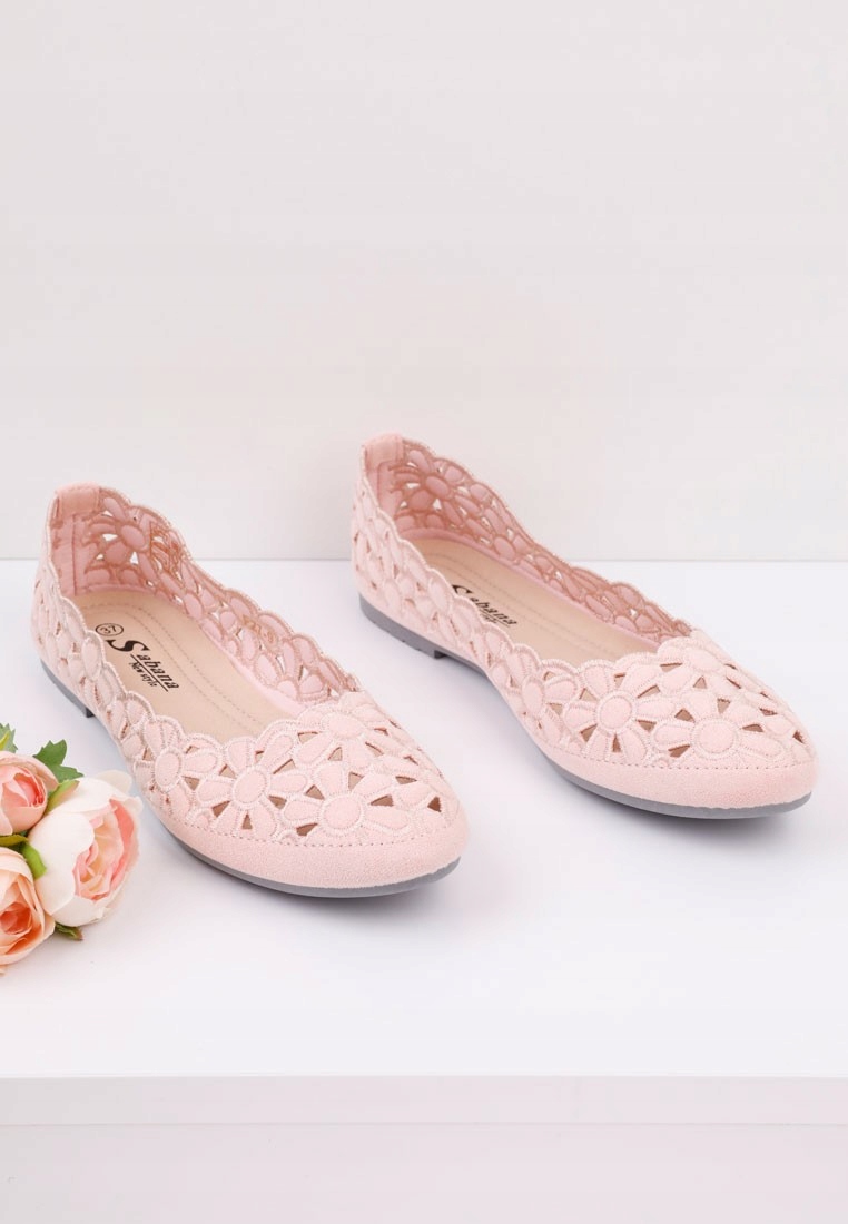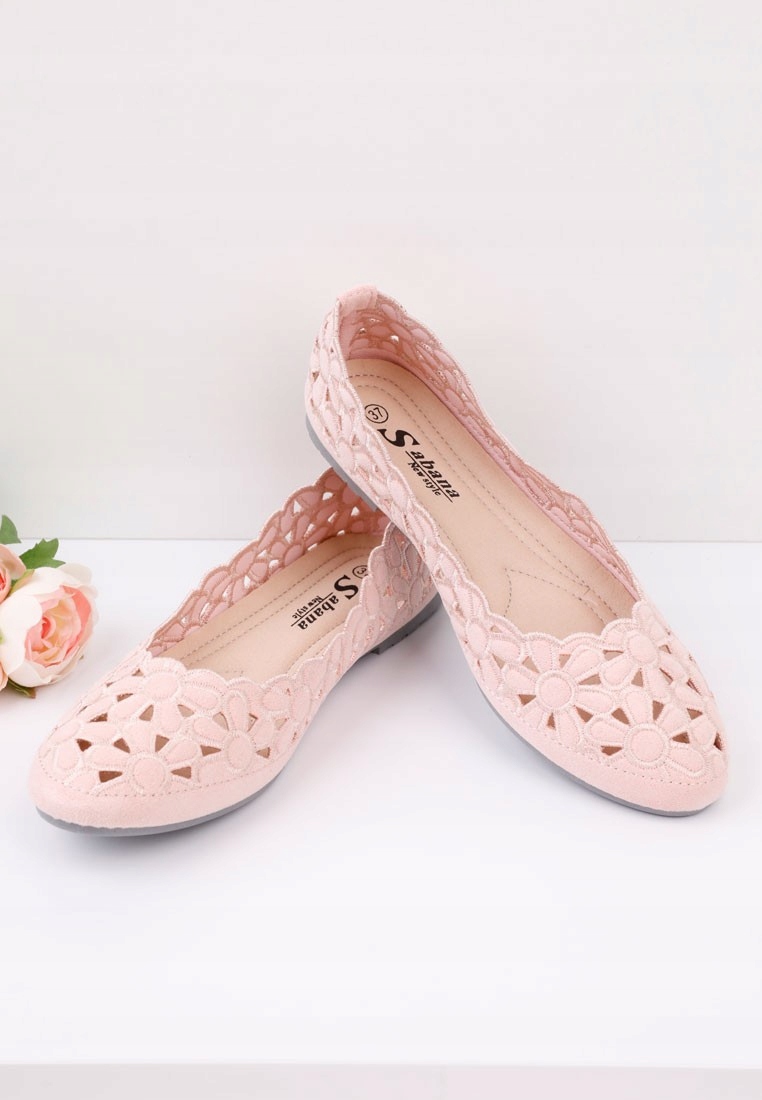 РОЗОВЫЕ ЖЕНСКИЕ БАЛЕТКИ, АЖУРНЫЕ ТУФЛИ НА ПЛОСКОЙ ПЛОСКОСТИ, СТЕЛКА ИЗ ЭКО КОЖИ, ТУФЛИ