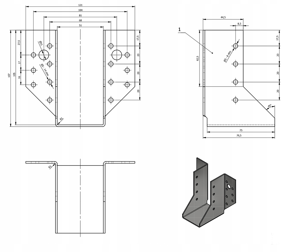 - WB8 - 45 x 108 x 75 x 2 [мм]