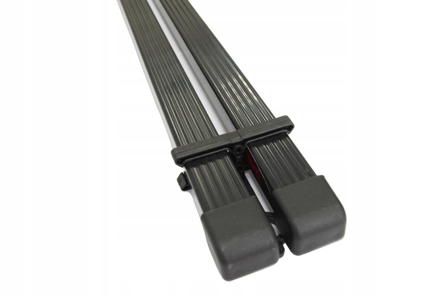 Стальные балки крыши прямоугольного сечения, покрытые утеплителем, защищающим их от повреждений и коррозии. Балки имеютиндивидуально подогнанное крепление под конкретную модель автомобиля. Большим преимуществом этой модели является то, что она оснащена противовзломными замками и измерительной лентой на каждой балке, что облегчает ее идеальную регулировку. Установочная ножка покрыта резиной, что обеспечивает устойчивую установку и защищает от повреждений.