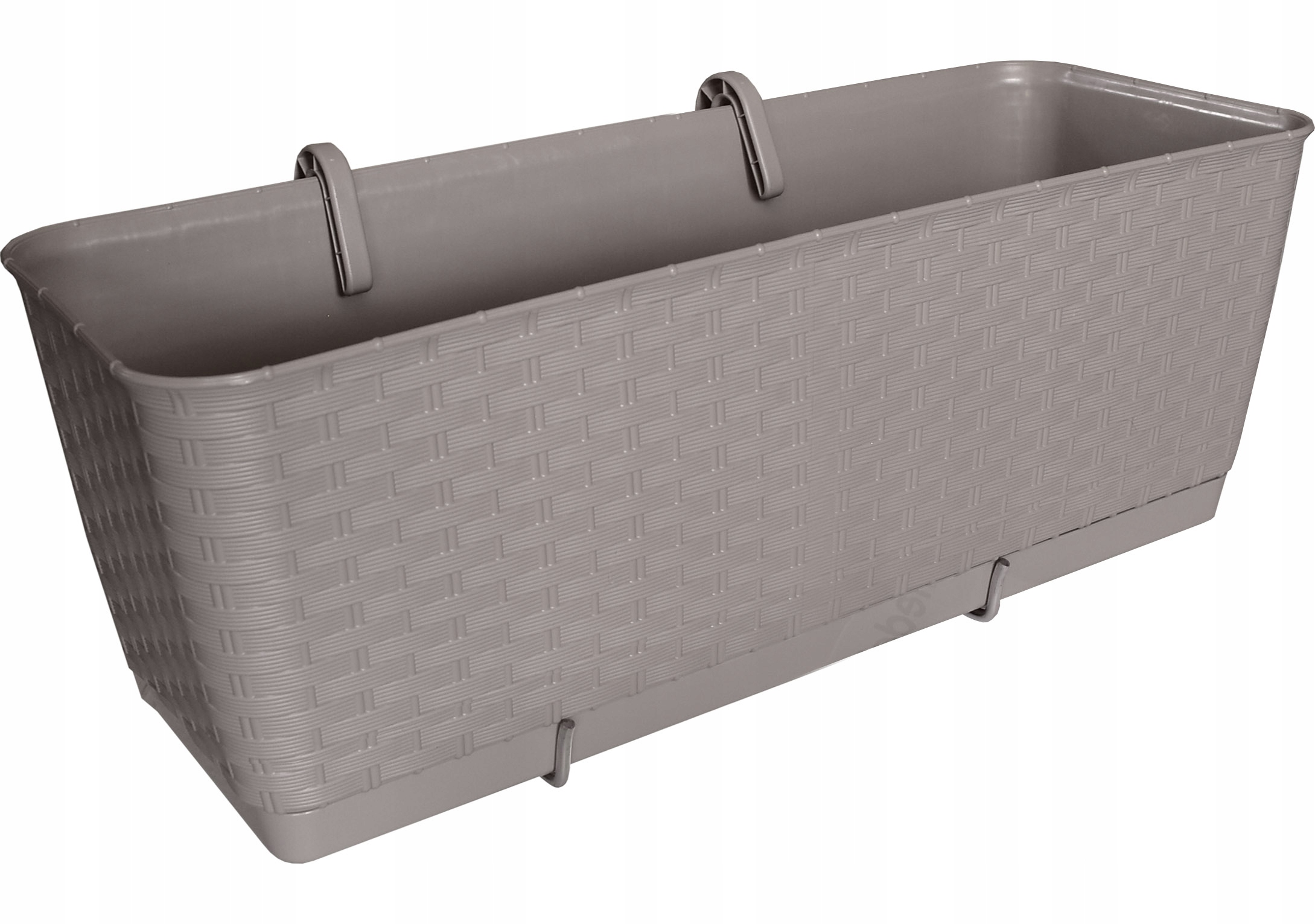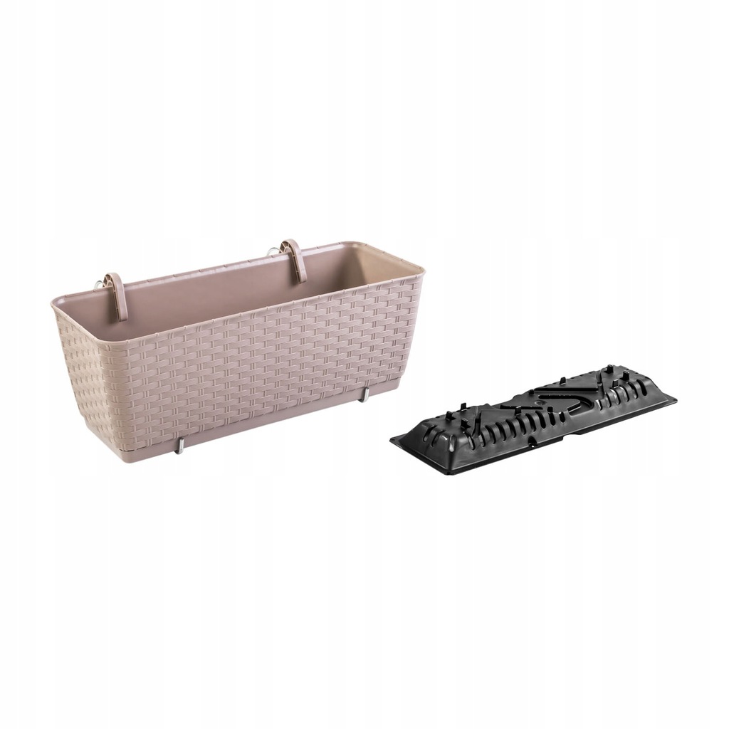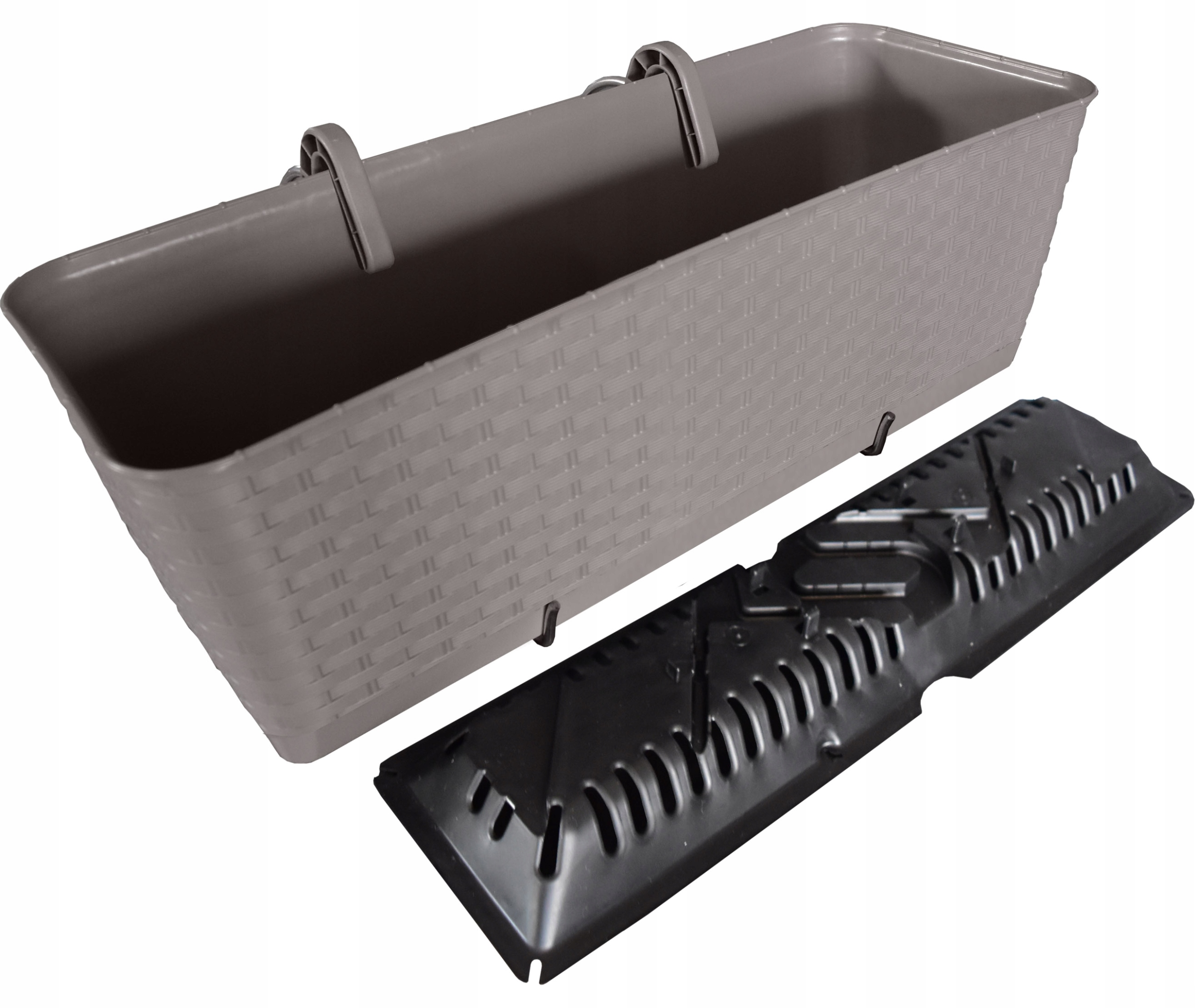 Прямоугольный горшок с счетом, имитирующим косичку. Доступно в версии с практической проставкой для надлежащего орошения растений. Это продлевает время, когда земля влажная. Это экономит воду путем более низкого испарения. Набор имеет барьерные крючки для самооценки.