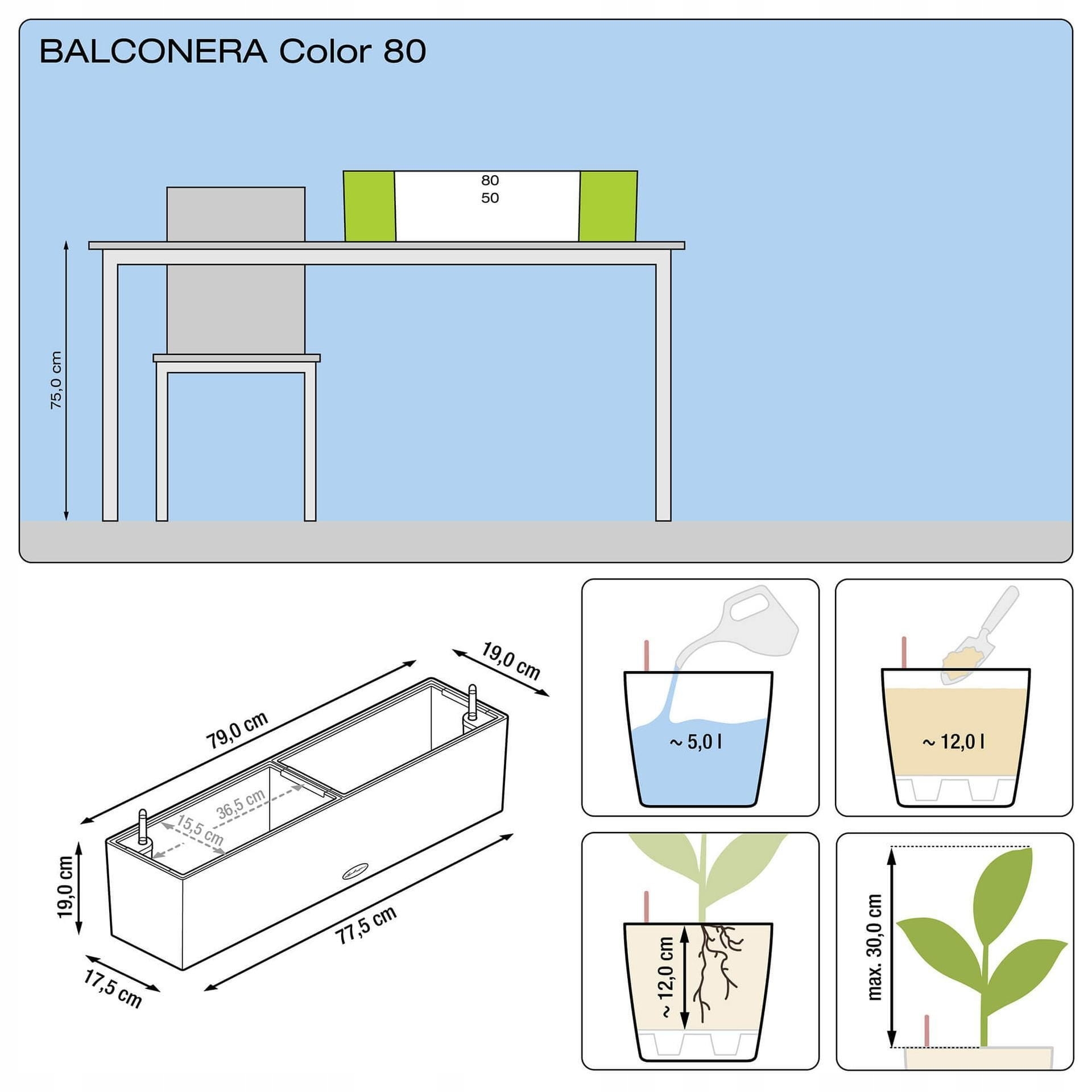 горшок, изготовленный из цветного полипропилена, устойчив к погодным условиям, дождям и снегопадам, морозом до -30 ° C, ультрафиолетовое излучение . Balconer благодаря матовой поверхности имеет универсальное использование, идеально подходит для интерьера и снаружи.