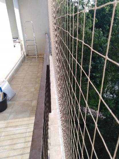 - Нижний край сетки можно крепить к балконным перилам или полу балкона.