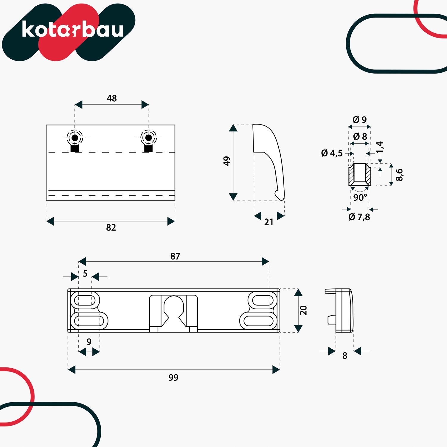 - Расстояние между отверстиями: 48 мм