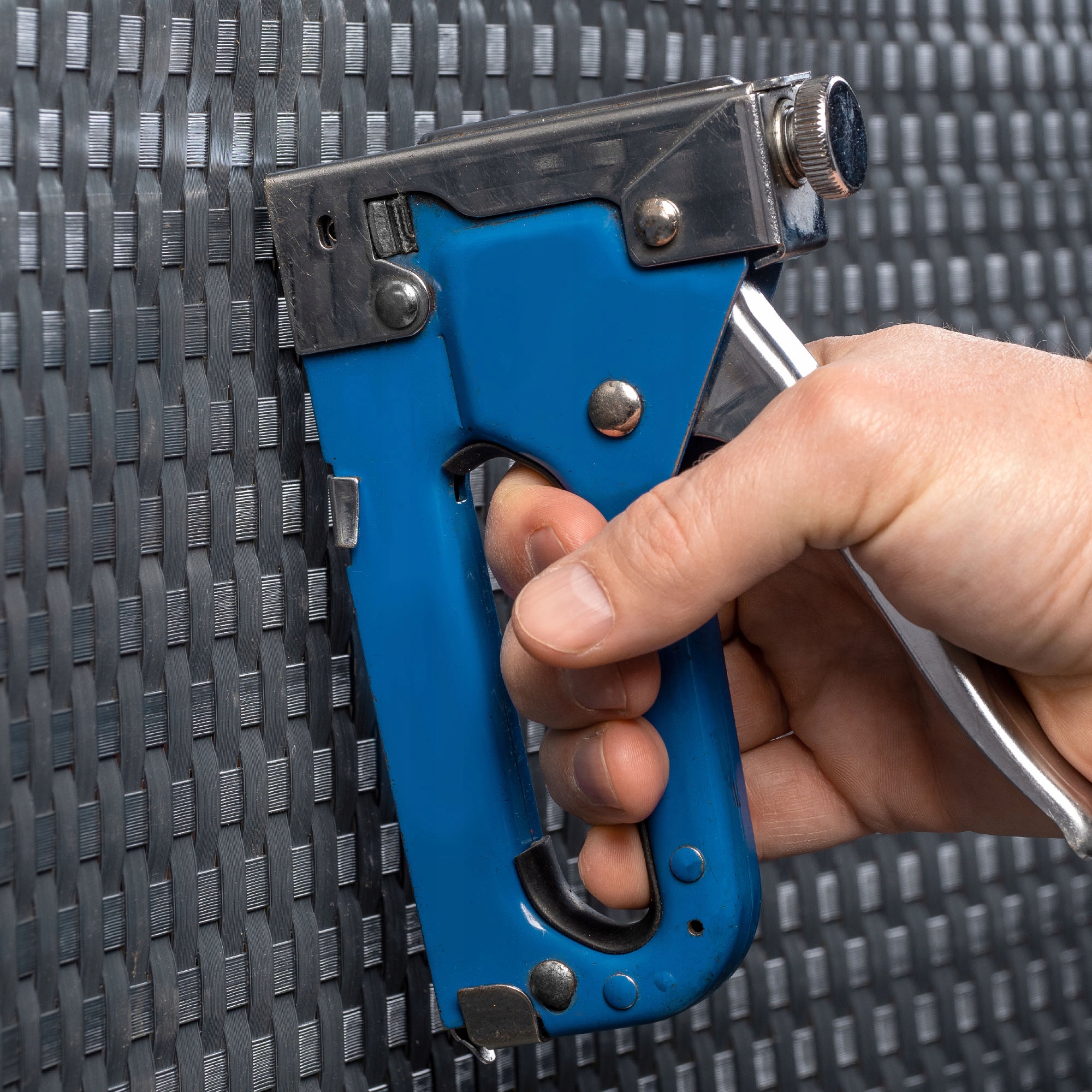 Установка будет более эстетичной, если вставить шуруп или гвоздь под планку техноротанга, которая в дальнейшем будет служить в качестве крышки для головки шурупа/гвоздя.