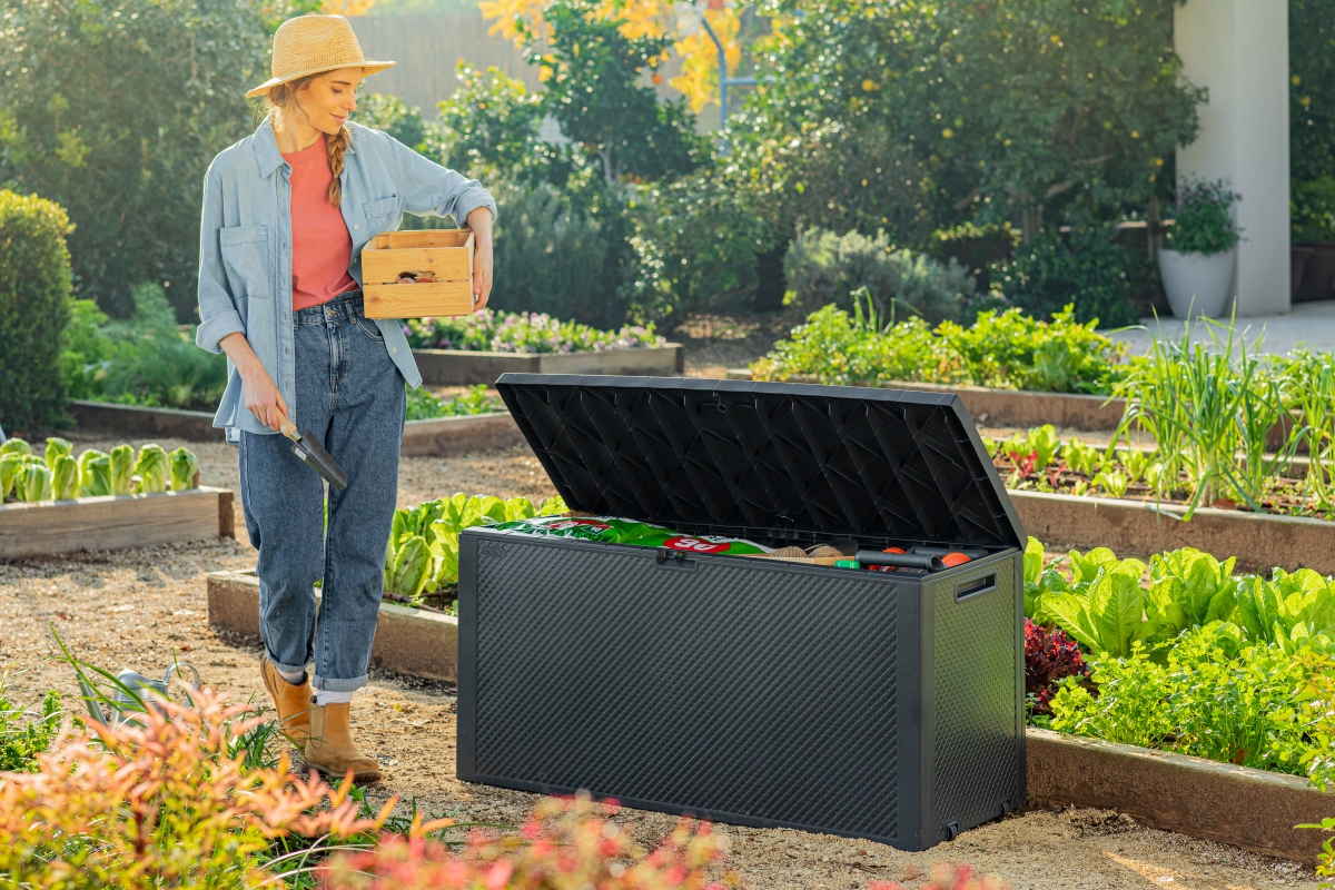 Воспользуйтесь нашим предложением и приобретите себе садовый ящик, в котором можно хранить абсолютно все! Все просто: в просторном багажнике поместятся садовые принадлежности (лопаты, перчатки, удобрения), инструменты, террасные подушки, цветочные горшки и даже детские игрушки общим весом 20 кг. b>!