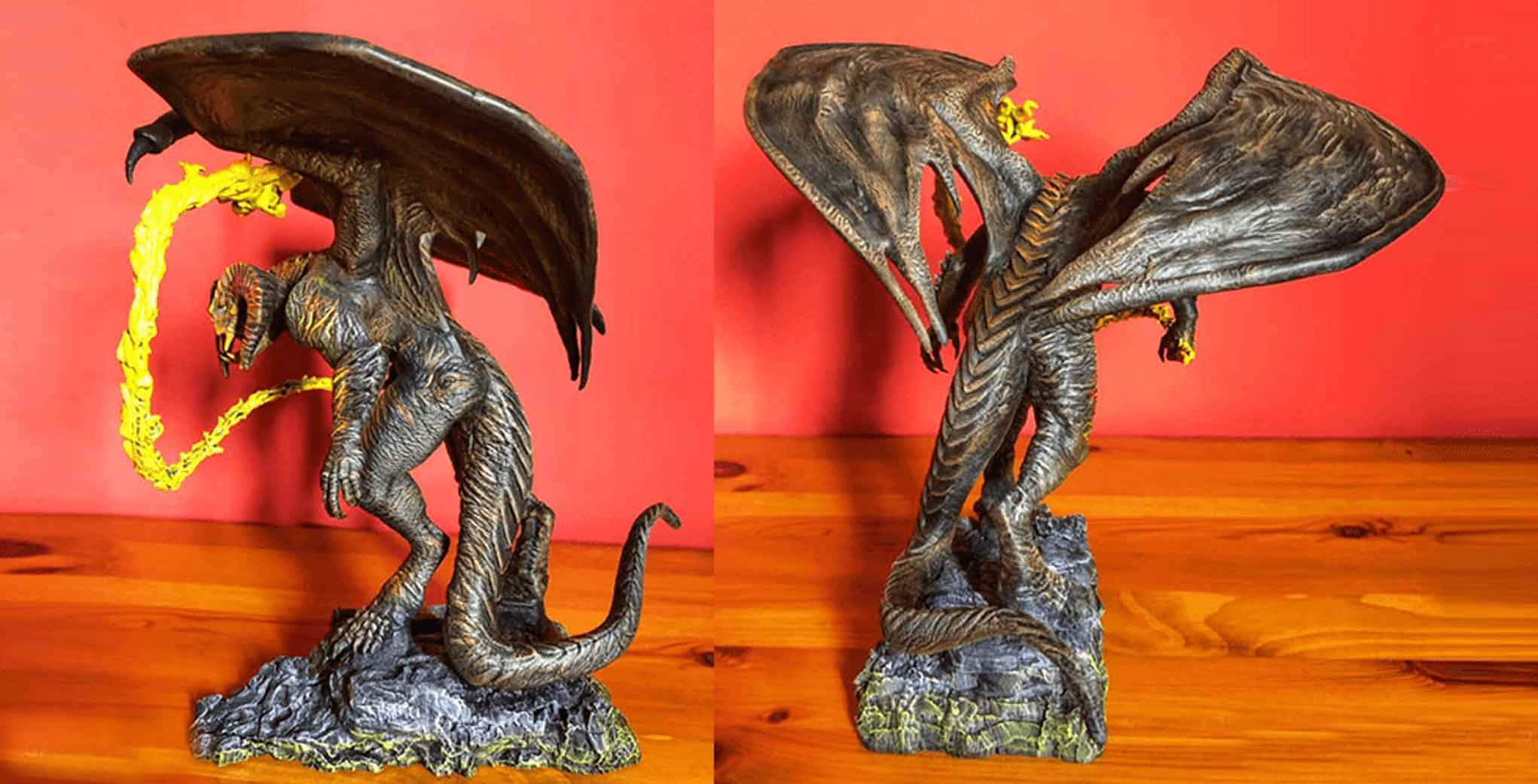 Модель Balrog — это принт высокого разрешения, выполненный из УФ-смолы. Для печати фигурок я использую смолу премиум-класса, она отличается от стандартной тем, что еще лучше передает детали и более гибкая. Основание напечатано из PLA по технологии FDM. Материалы идеальны для обработки (выпиливания, склейки, покраски)