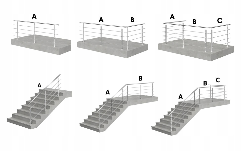 На наших аукционах Allegro представлены модели балюстрад Атланта различной длины. Докупив дополнительные секции A+B+C, балюстраду можно свободно конфигурировать. Благодаря таким соединителям, как колено на 90, модель 17.0305.242.12 или шарнирное колено, модель 17.0302.242.12, вы можете создать балюстраду, адаптированную к любому балкону, мезонину или террасе. Если есть необходимость расширить балюстраду на дополнительные секции, это можно сделать с помощью соединителя перил с кодом продукта 17.0790.242.12.