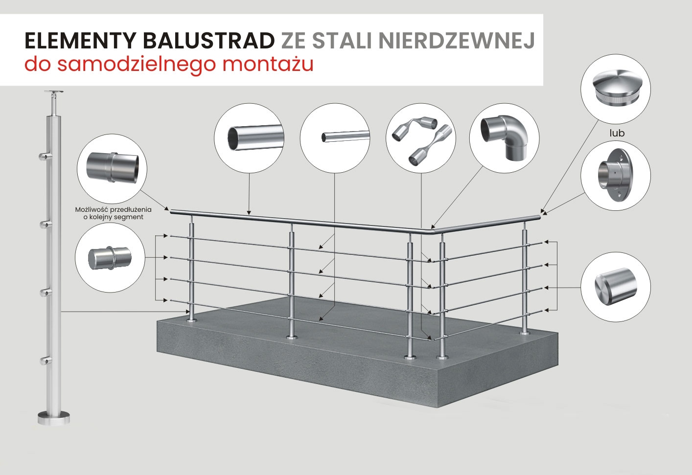 Конструкция балюстрады имеет возможность регулировки углов на перилах и крепления поперечных трубок. Благодаря этому техническому решению наша балюстрада универсальна. Балюстрада может быть установлена на лестницах и балконах.