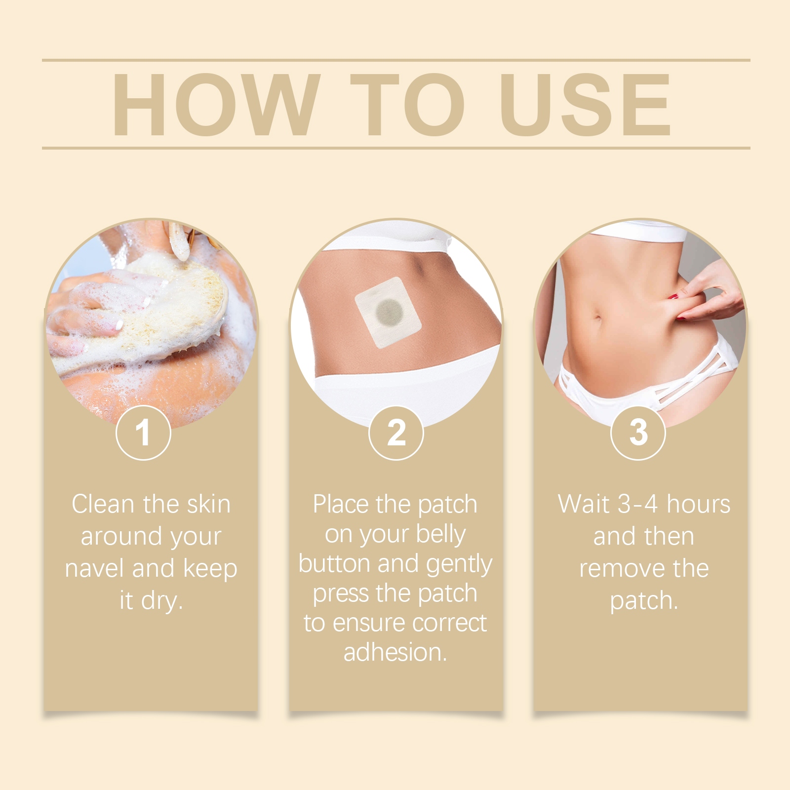 2. Поместите патч на пупок и осторожно нажмите кнопку, чтобы обеспечить адекватную адгезию