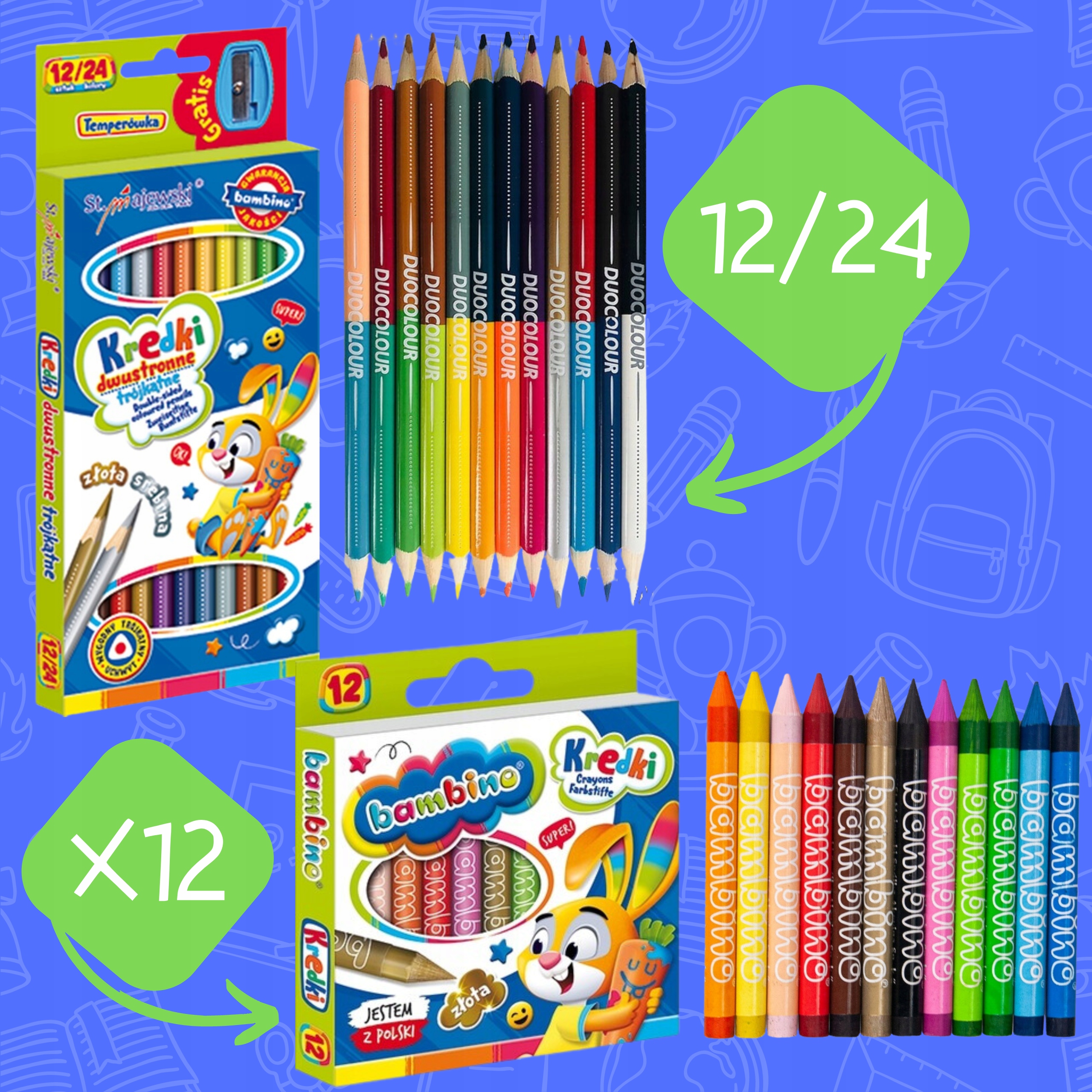 ⭐Бамбино, школьные мелки треугольные, двухсторонние, 12/24 цвета