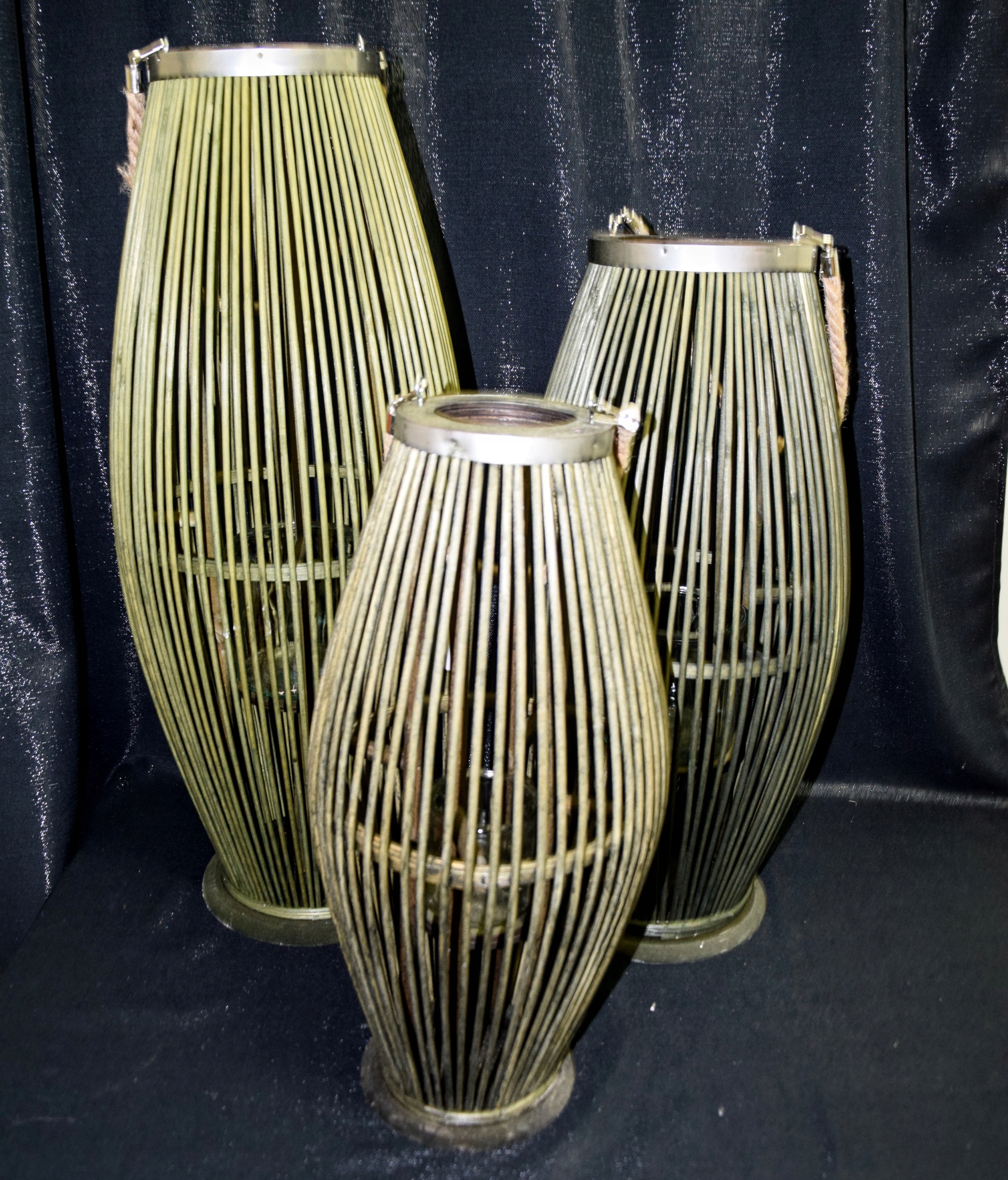 Высокий фонарь из бамбука, со стеклянным контейнером.