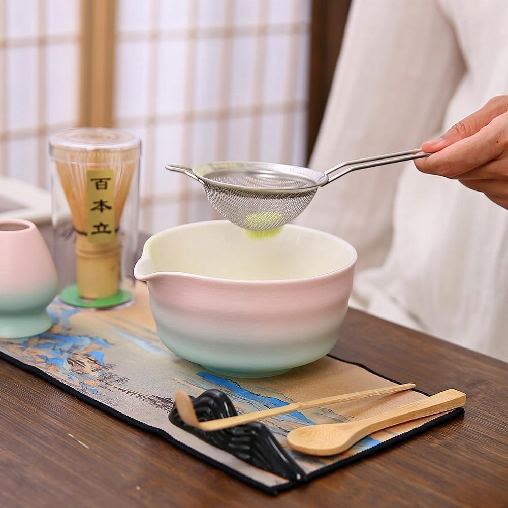 🍵🍵НАБОР МАТЧА ВИСТЕР - ЧАШКА МАТЧА И БАМБУКОВЫЙ СВИСТОК ДЛЯ МАТЧИ, ЛОЖКА, СИТОК, ПШЕНИЦА, 8 ЭЛЕМЕНТОВ. ИДЕАЛЬНЫЙ СТАРТОВЫЙ НАБОР ДЛЯ ЦЕРЕМОНИИ МАТЧА (ГРАДИЕНТ РОЗОВЫЙ)🍵🍵