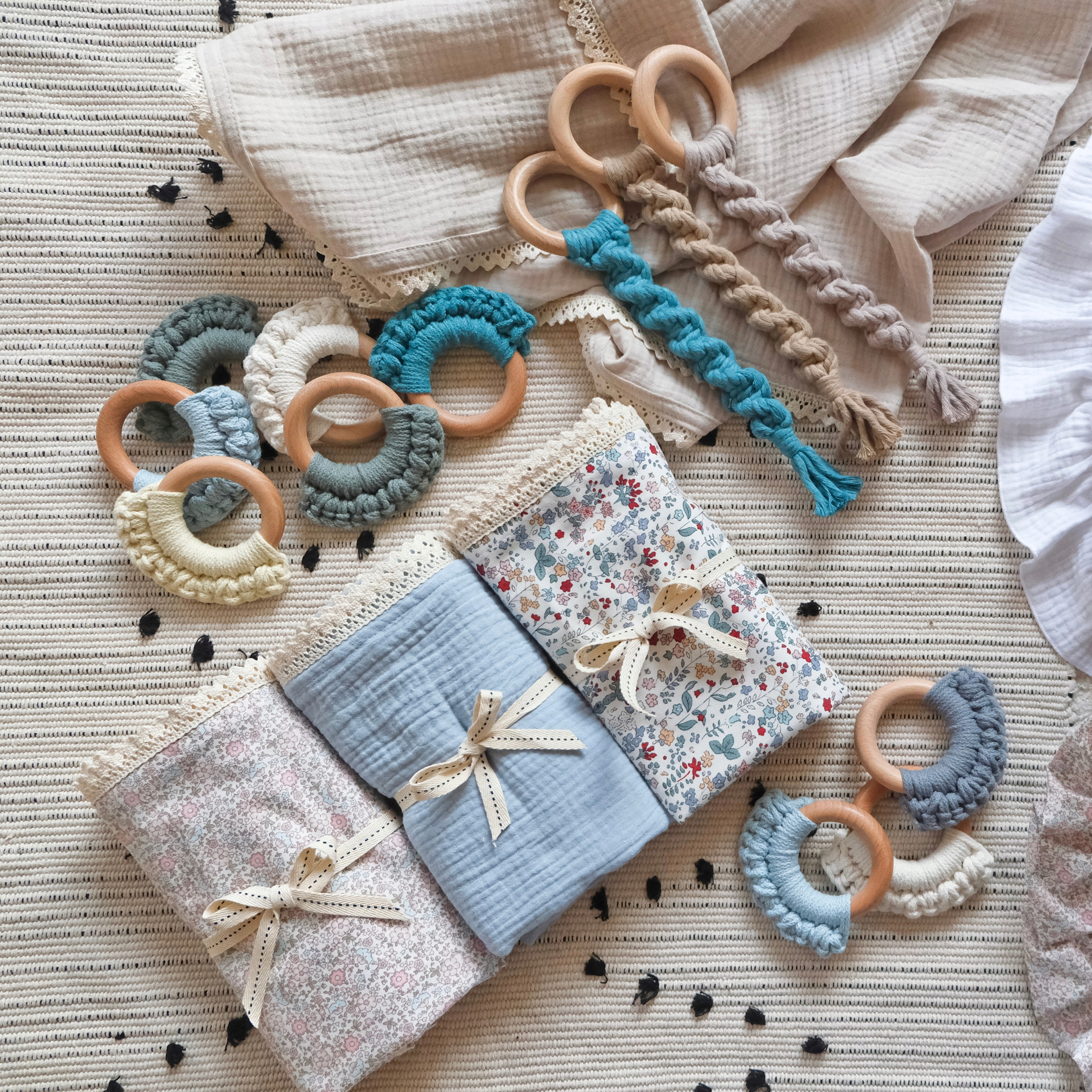 - игрушки/погремушки/прорезыватели ручной работы,