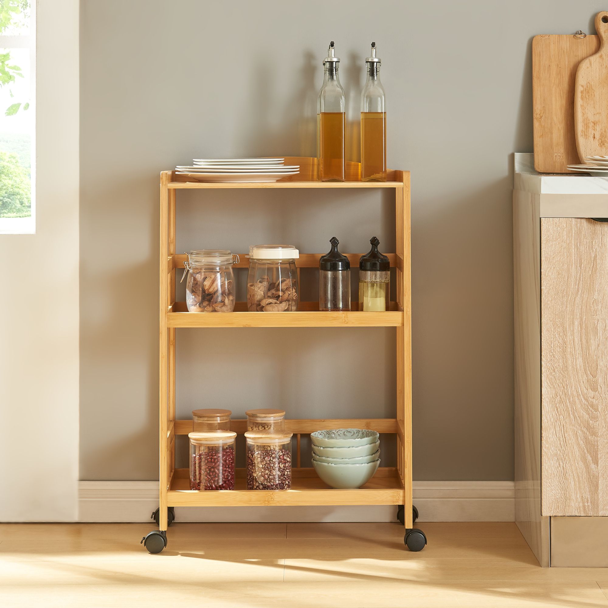 Бамбуковая кухонная тележка для подачи, 3X полка, бамбук