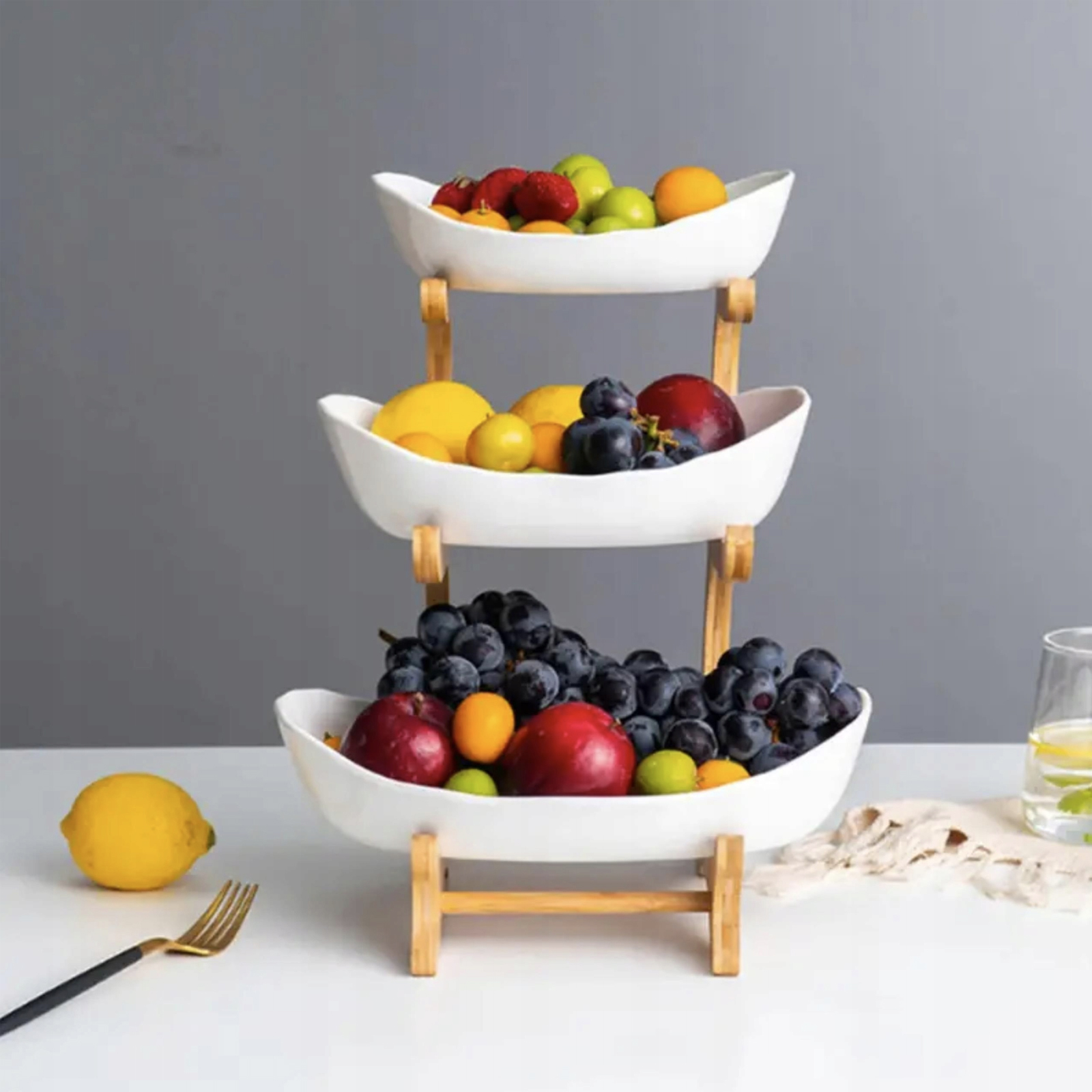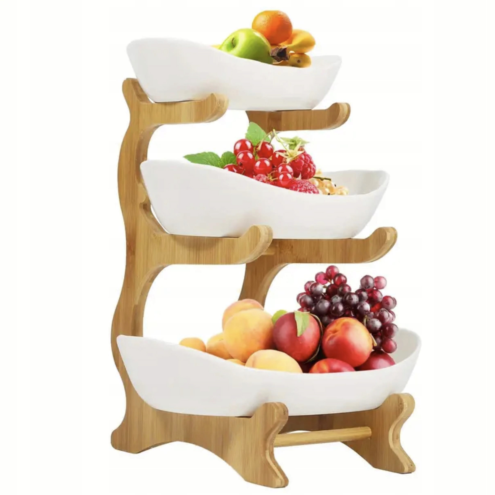 БАМБУКОВАЯ ПОДСТАВКА ДЛЯ ФРУКТОВ 3-ЯРУСНАЯ ОВОЩНАЯ ЧАША-ОРГАНИЗАТОР