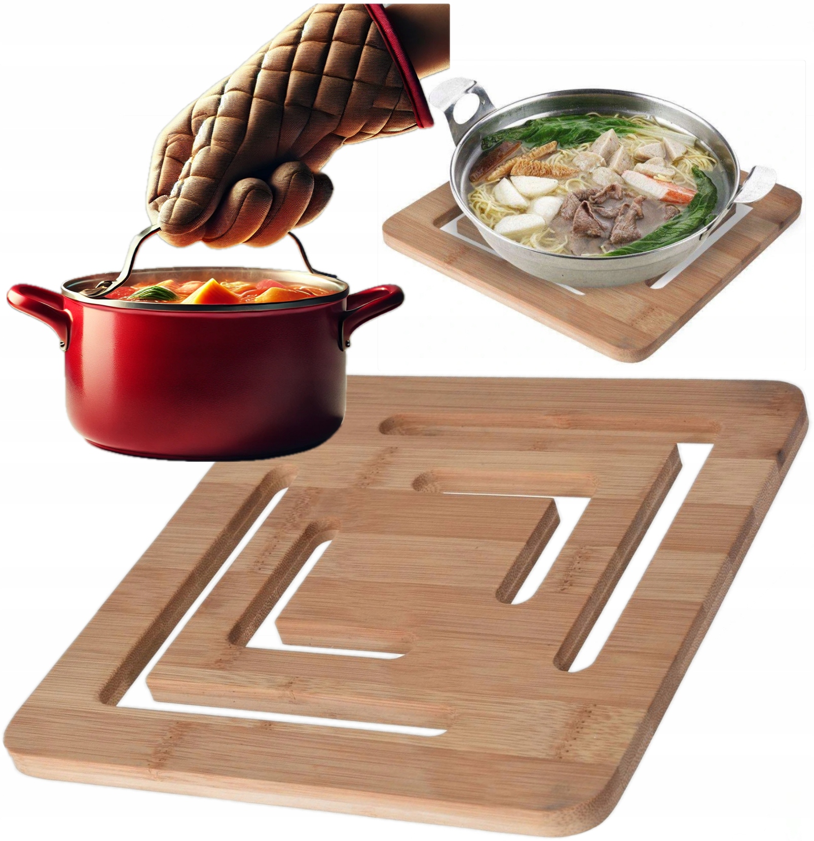 Изготовлен из бамбукового дерева. Ажурная доска для горячей кухонной утвари.