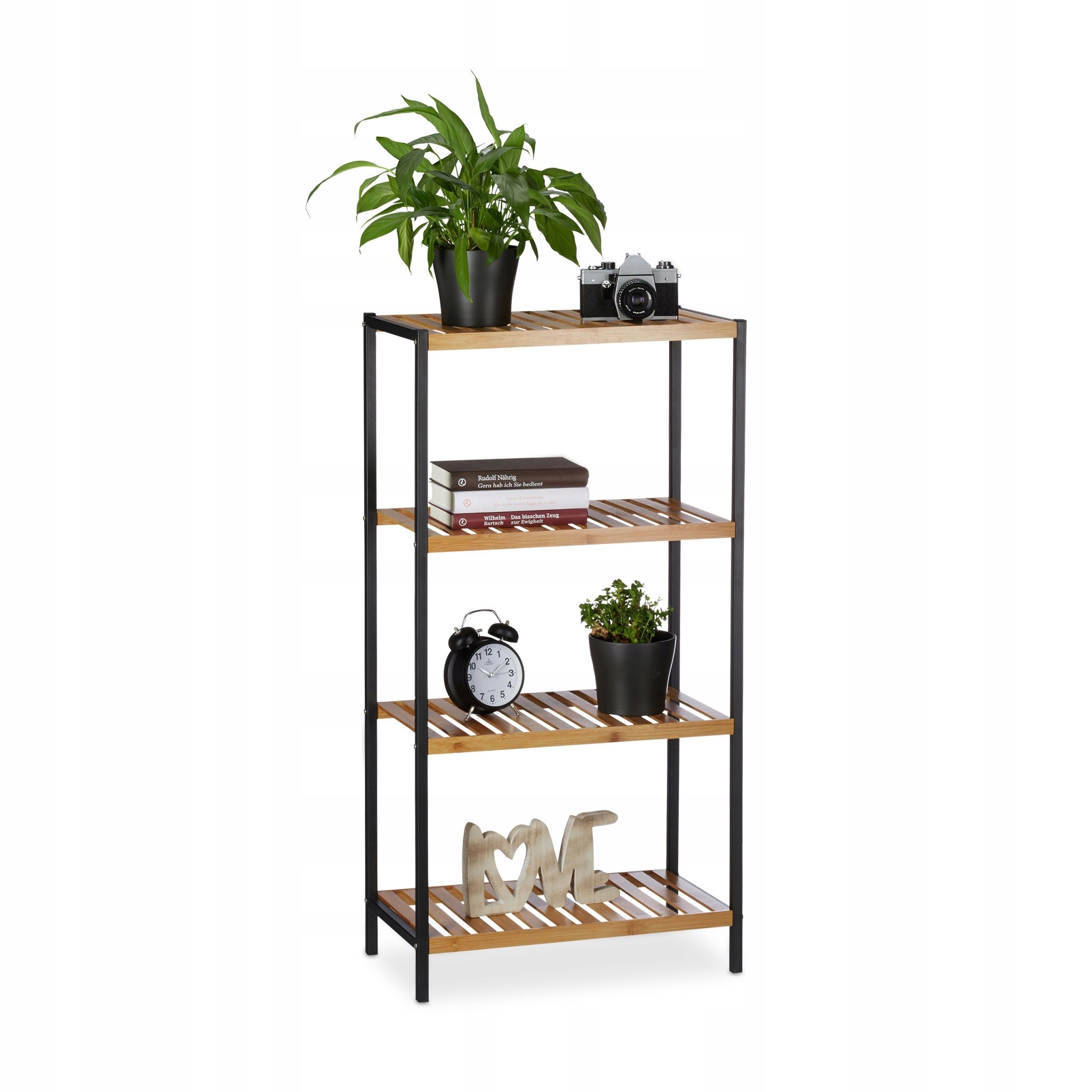 Оригинальная бамбуковая полка с 4 полками, черный металлический каркас