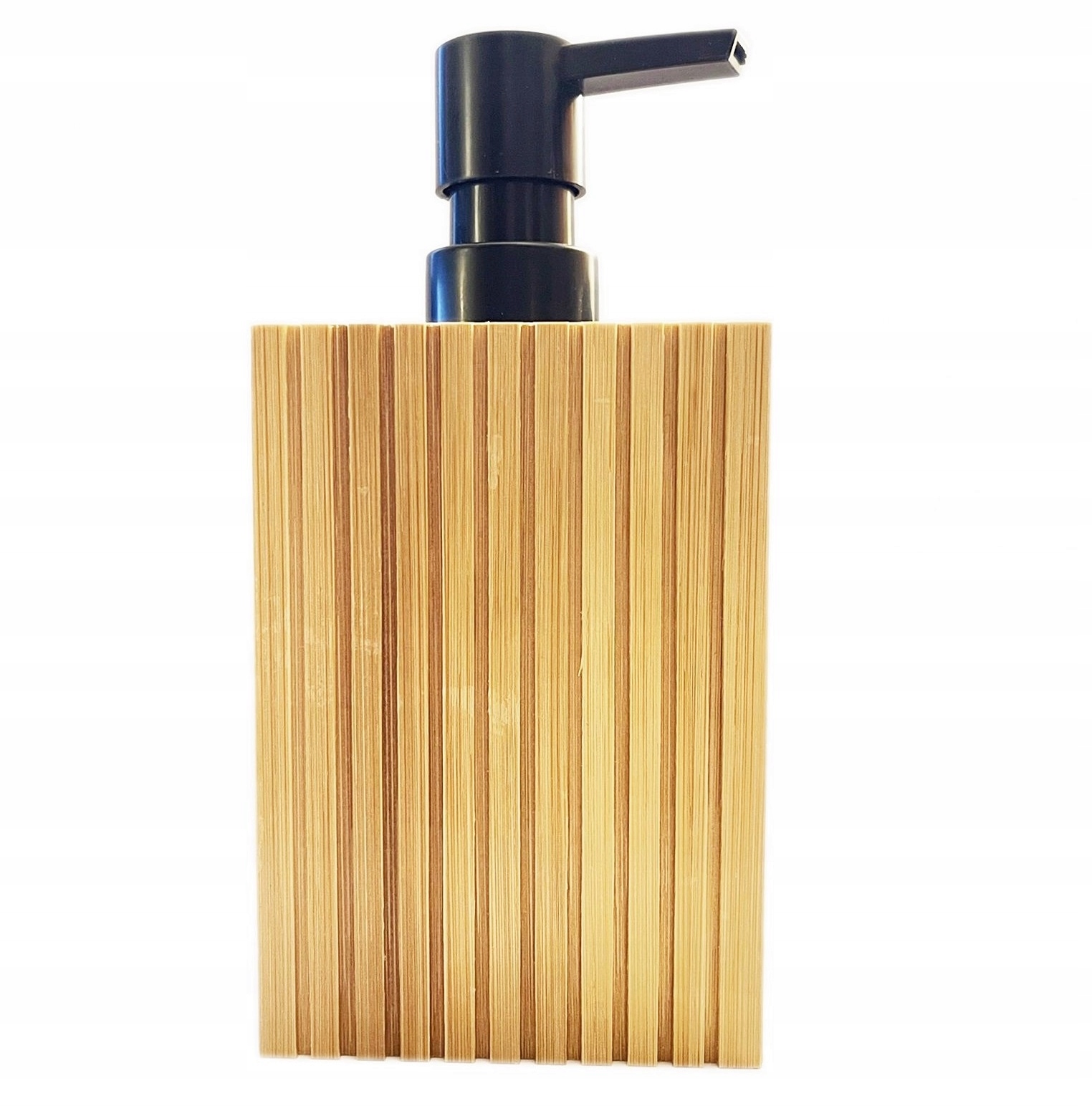 Элегантный бамбуковый дозатор с черной помпой.