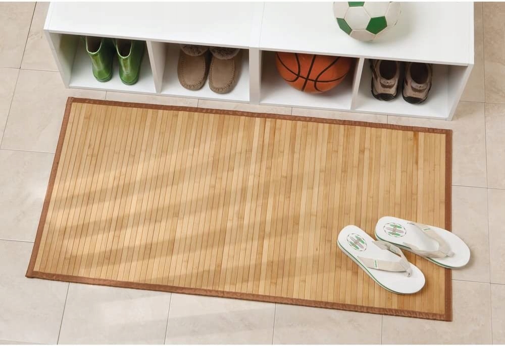 Бамбуковый коврик iDesign идеально подходит для кухни, ванной комнаты и коридора благодаря своим гидрофобным свойствам.