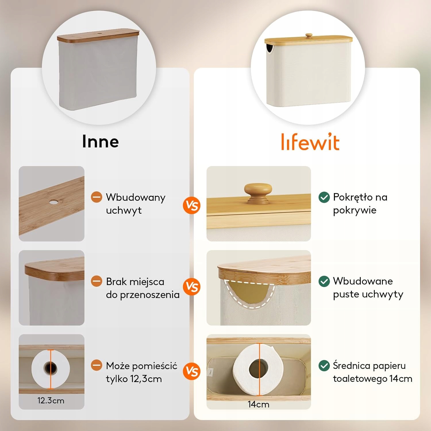 с емкостью 23 литра в нашей корзине будет размещать до 9 роликов туалетной бумаги . Это означает, что вы всегда будете готовы к любой ситуации, устраняя необходимость частых дополнений. Это практическое решение заботится о вашем удобстве и экономит время. Вы можете легко переместить его и установить в любом месте, не опасаясь повреждения