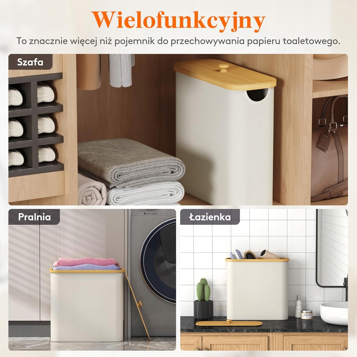 Сплошная конструкция, сделанная из высококачественного бамбука, не только защищает содержание от влаги и пыли, но также добавляет элегантность в каждую ванную комнату. Bamboo Crackets Обеспечить долговечность и стабильность, предотвращая деформации. Несколько простых шагов достаточно, чтобы быстро и легко сложить организатора. Когда он не используется, его можно сложить на компактные размеры, что облегчает хранение. В дополнение к туалетной бумаге, она отлично подходит для хранения полотенец, игрушек или других аксессуаров для ванной комнаты, помогая поддерживать заказ
