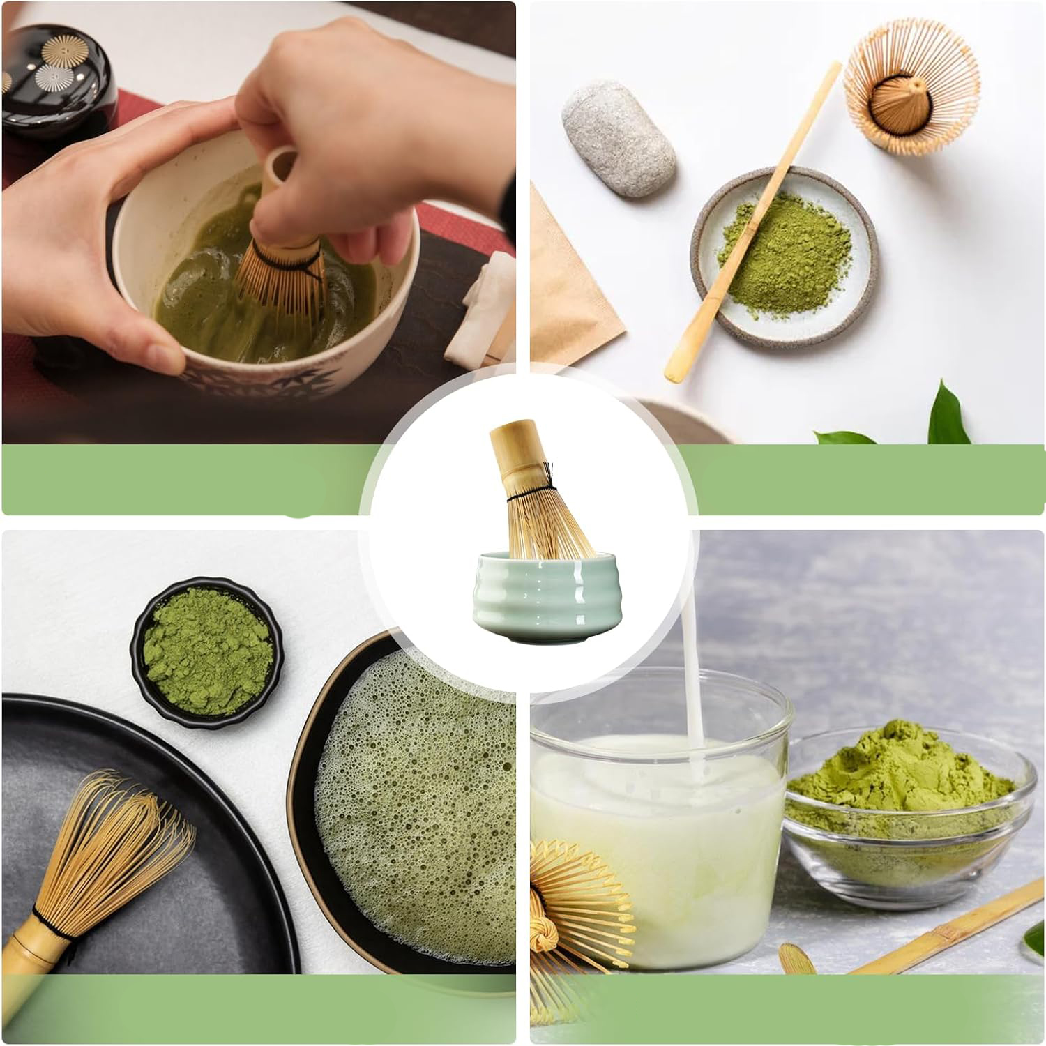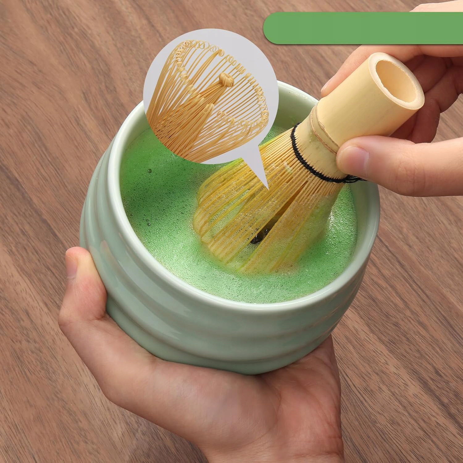 - Лук обеспечивает безопасную и даже залив матчу, в то время как матча эффективно смешивает порошок для получения пены и гладкого чая.