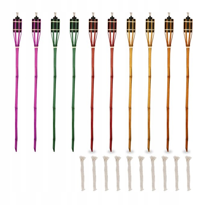 Бамбуковые факелы — идеальное украшение сада для создания романтической атмосферы на свадьбах, барбекю и других мероприятиях на свежем воздухе. Но не только при горении, даже без горящего пламени, масляные факелы благодаря своим ярким цветам расставляют в саду прекрасные цветовые акценты. Горелки требуют только заправки маслом и сразу готовы к использованию. Чтобы вы могли долго наслаждаться бамбуковыми факелами, в комплект входят 10 запасных фитилей.